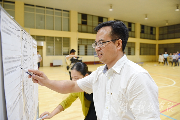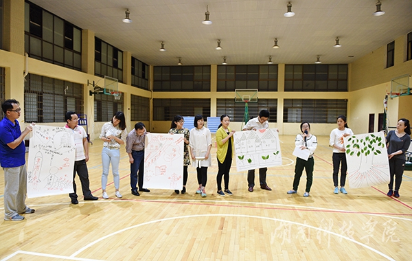 此次体验式团体活动由党委组织部党支部牵头,党政办党支部、党委宣传统战部党支部、纪委党支部参与。活动主要包括“准确连接”、“快速选择”、“集体智慧”和“自我反省”四个环节。活动正式开始前,全体党员被随机分成两个队,分别选出队长,确定队名,即“四有队”和“发展队”,创建了各自团队文化。“准确连接”环节通过准确连接党章相关知识,提高全体党员对党章的知识掌握;“快速选择”环节则通过完成碎片化知识多项选择,检验团队成员对党章党规理解的程度,培养团队协作意识;“集体智慧”环节两队群策群力,发挥集体的智慧,围绕《党章》的四大亮点展开讨论,每队代表以图文并茂的形式对展示内容进行现场宣讲;“自我反省”环节要求党员对照党章查找自身存在的不足,深入分析原因,明确努力的方向。