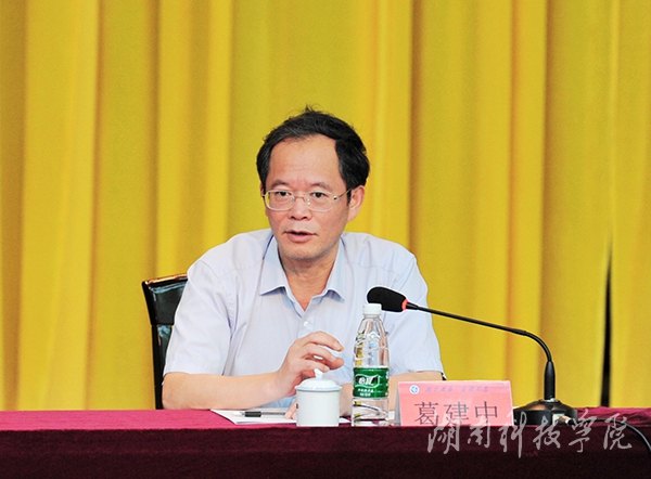 本网讯 (记者 张云芳) 5月8日,为实现高等教育与基础教育无缝对接、互利共赢,由我校与永州市教育局联合主办的第二届永州经济社会发展论坛在尚美楼二楼演播厅举行,来自永州市县区教育局负责人、教科院专家、中学校长代表、我校教师代表等200余人就“永州基础教育发展”这一主题开展热论。省教育厅党组成员、副厅长葛建中,永州市政府副市长刘尤碧出席开幕式并讲话,湖南省教育厅高等教育处处长唐利斌,永州市教育局党组书记、局长蒋俊林,永州市教科院院长严中斌及我校全体在家校领导出席。开幕式由校党委书记陈弘主持,校长曾宝成致辞。