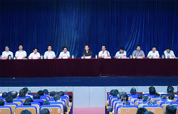 本网讯(记者 邓肖华 曾霏霏 摄影 何帅文)为进一步推动学校转型发展,5月7日,2016年度教学工作大会在尚美楼演播厅召开。湖南省教育厅党组成员、副厅长葛建中,湖南省教育厅高等教育处处长唐利斌到会指导,校党委书记陈弘、校长曾宝成及在家校领导出席会议。会议分别由陈弘、曾宝成主持。副校长李常健作题为“围绕‘四个转到’,深化教学改革,全面提高人才培养质量”的教学工作大会报告。曾宝成作了题为“全面发力,突出教学工作中心地位”的讲话。
