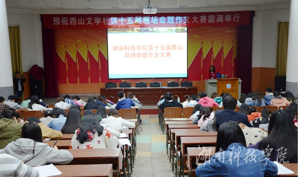 本网讯(记者 钟卫香 邓丹霞)4月10日,我校西山文学社在明德楼报告厅举办第十五届西山现场命题作文大赛,全校近300名同学参加比赛。