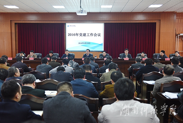 会议结合学校实际对今年党建工作作出部署。会议强调要做好以下几个方面的工作:一是扎实开展“两学一做”学习教育,推动各级党组织把学习教育融入日常、抓出实效;二是加强基层党组织建设,激发各级党组织创新活力;三是进一步严格党内生活,抓好党员发展和教育管理工作;四是健全党建工作责任体系;五是认真做好党员组织关系集中排查和《中国共产党入党志愿书》统一编号管理工作;六是认真做好纪念建党95周年和党内评优活动。