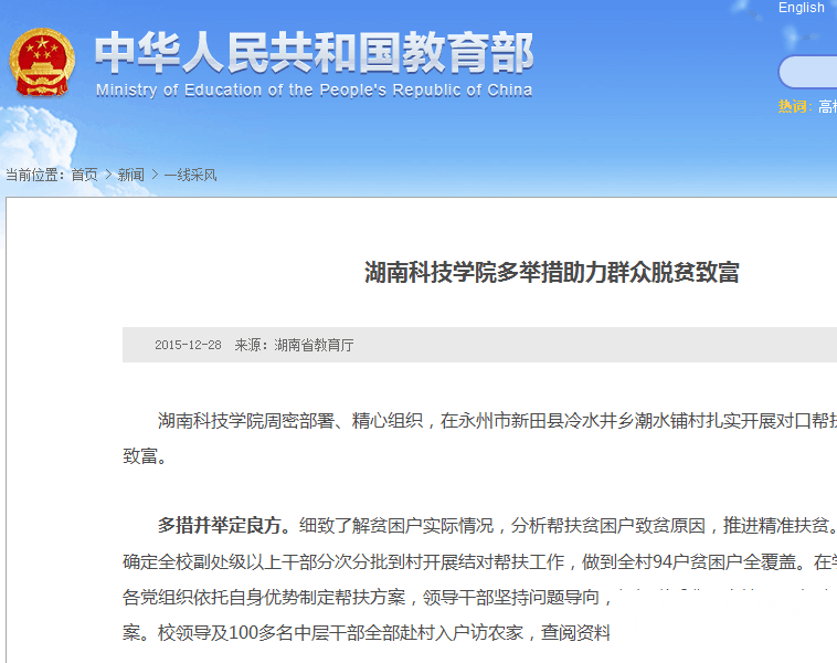 本网讯 12月28日,中华人民共和国教育部网站“战线联盟”栏目发布题为《米兰官方端网页版多举措助力群众脱贫致富》的消息,对我校多举措精准扶贫工作给予推介。