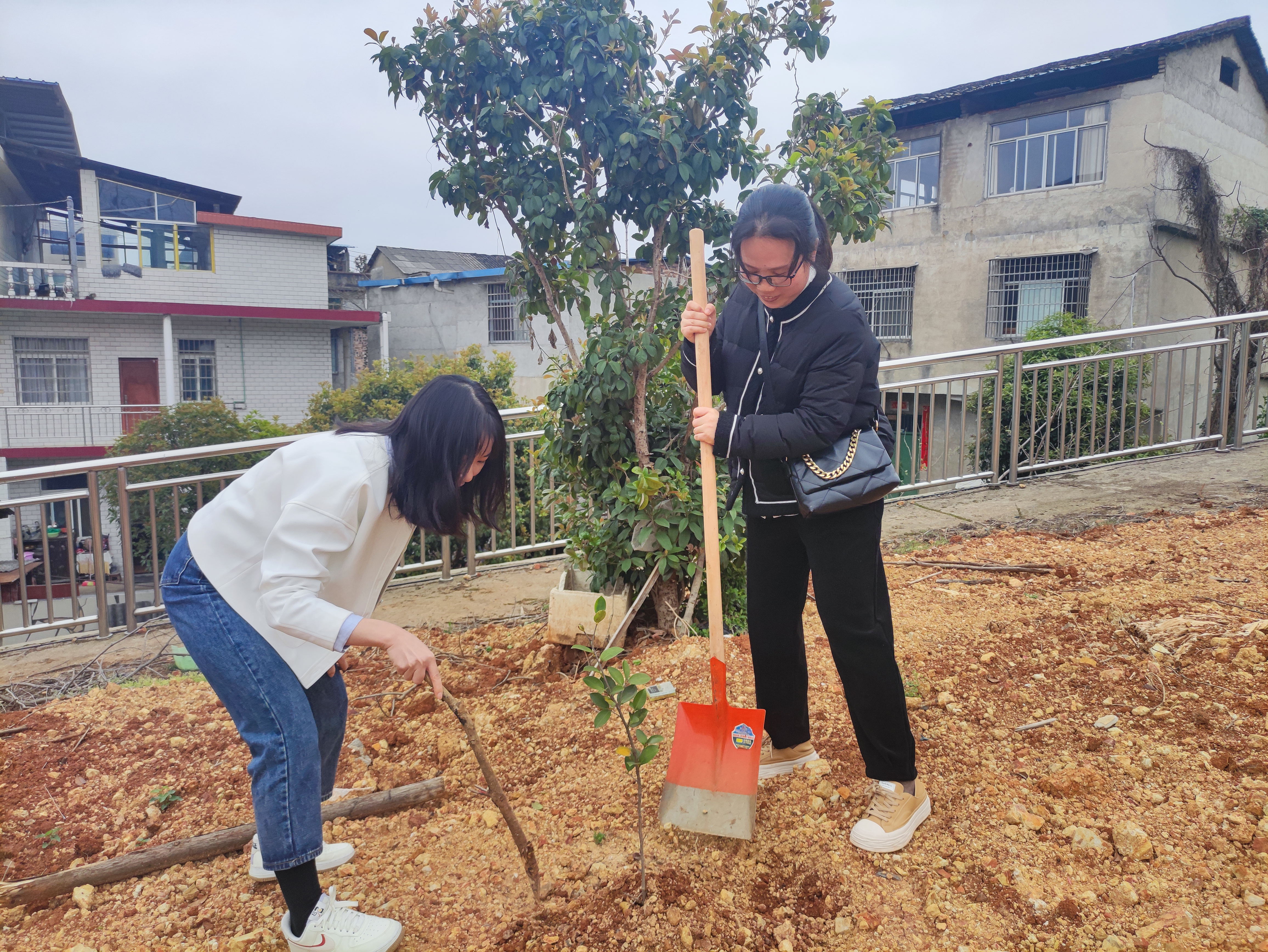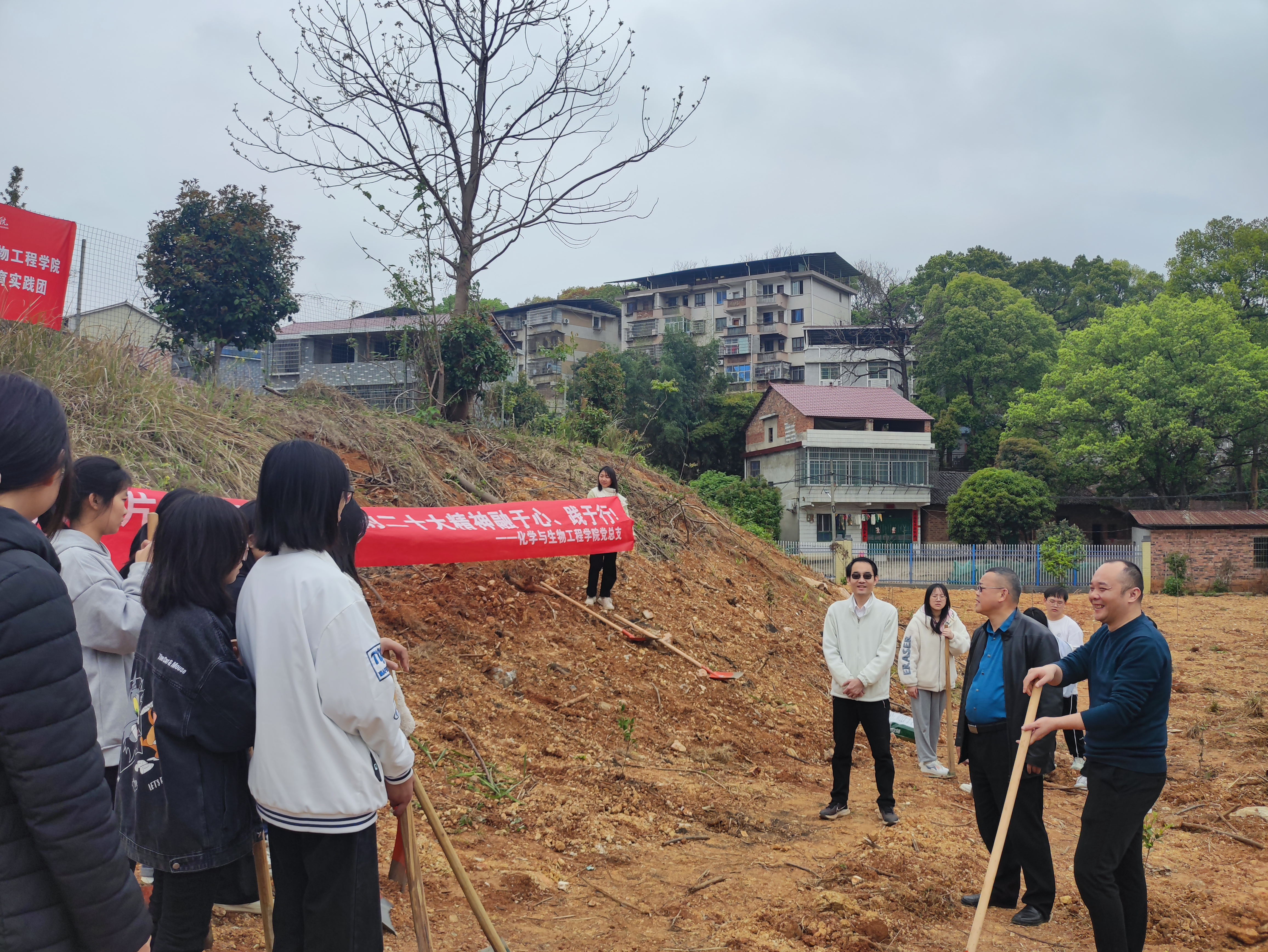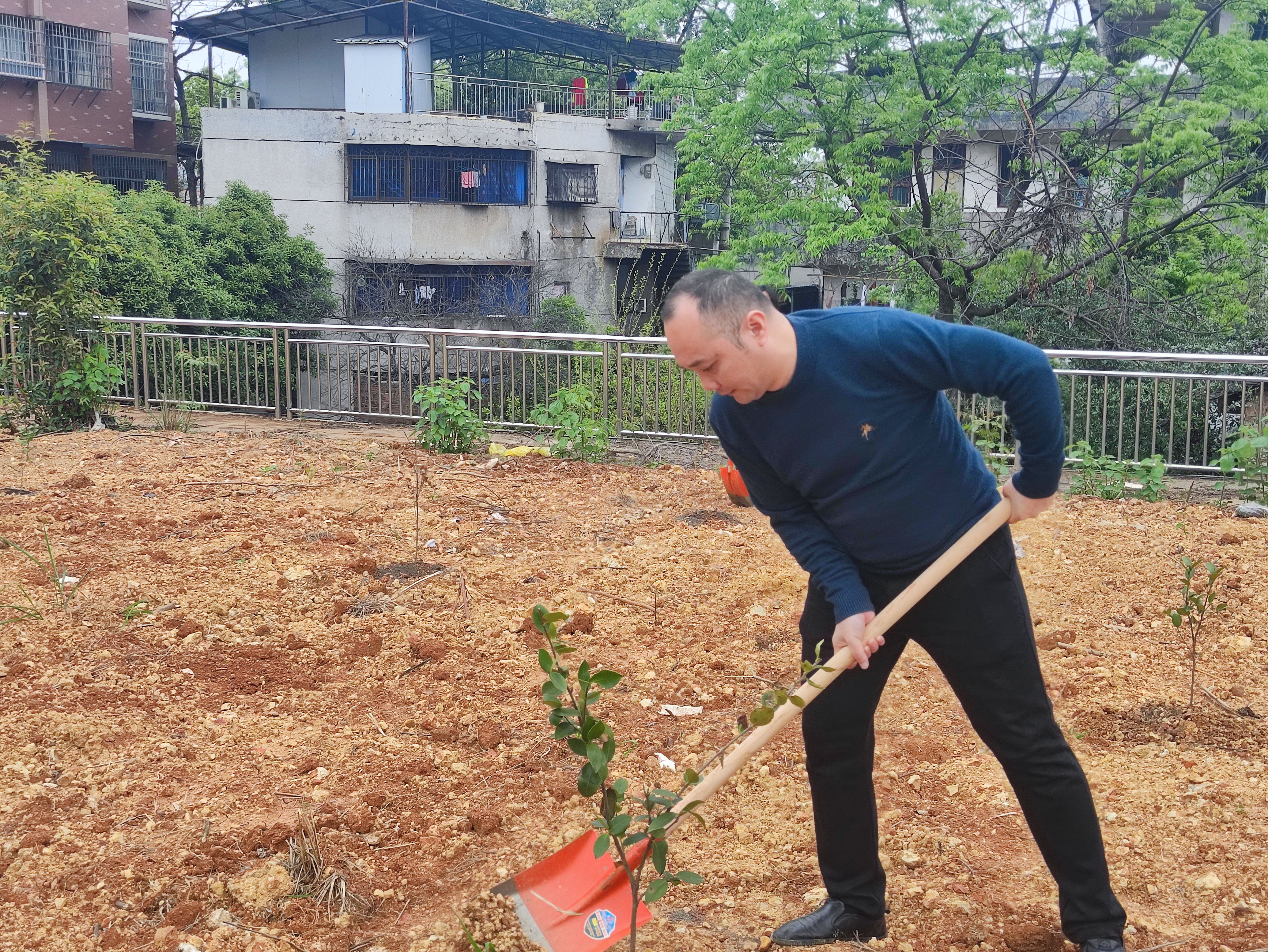 活动过程中,曾二青亲身示范,向同学们传授松土、施肥的技巧以及锄头的正确手持姿势。覃佐东和基艳带领同学们为树苗除草、松土和施肥。同学们合理分工、团结协作,有条不紊。实验基地的树苗在同学们的辛勤劳动下换新颜、展春姿。
