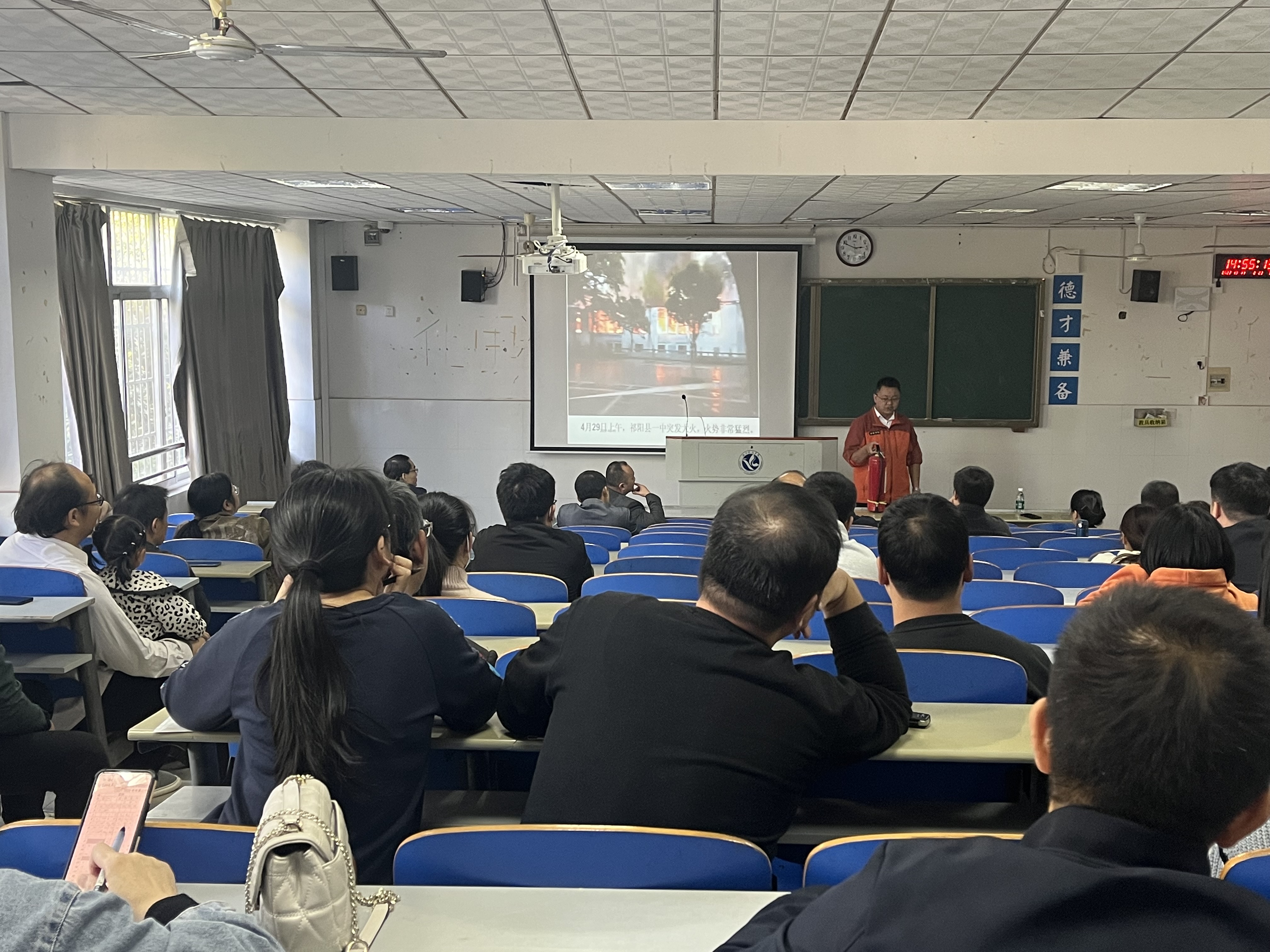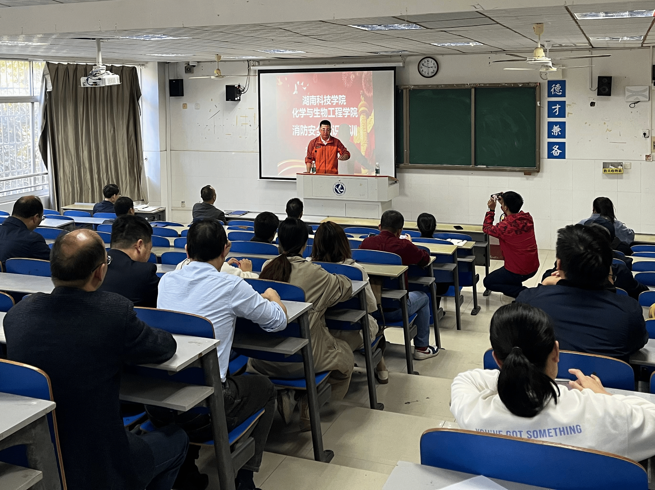 为进一步提高学院全体教职工消防安全意识和自防自救能力,全面筑牢校园消防安全屏障,迎接党的二十大胜利召开,10月11日下午学院邀请永州市湘安消防公益服务中心宣传员谭塘峰为全体教职工开展消防安全知识培训会,培训会由党总支书记曾二青主持。
