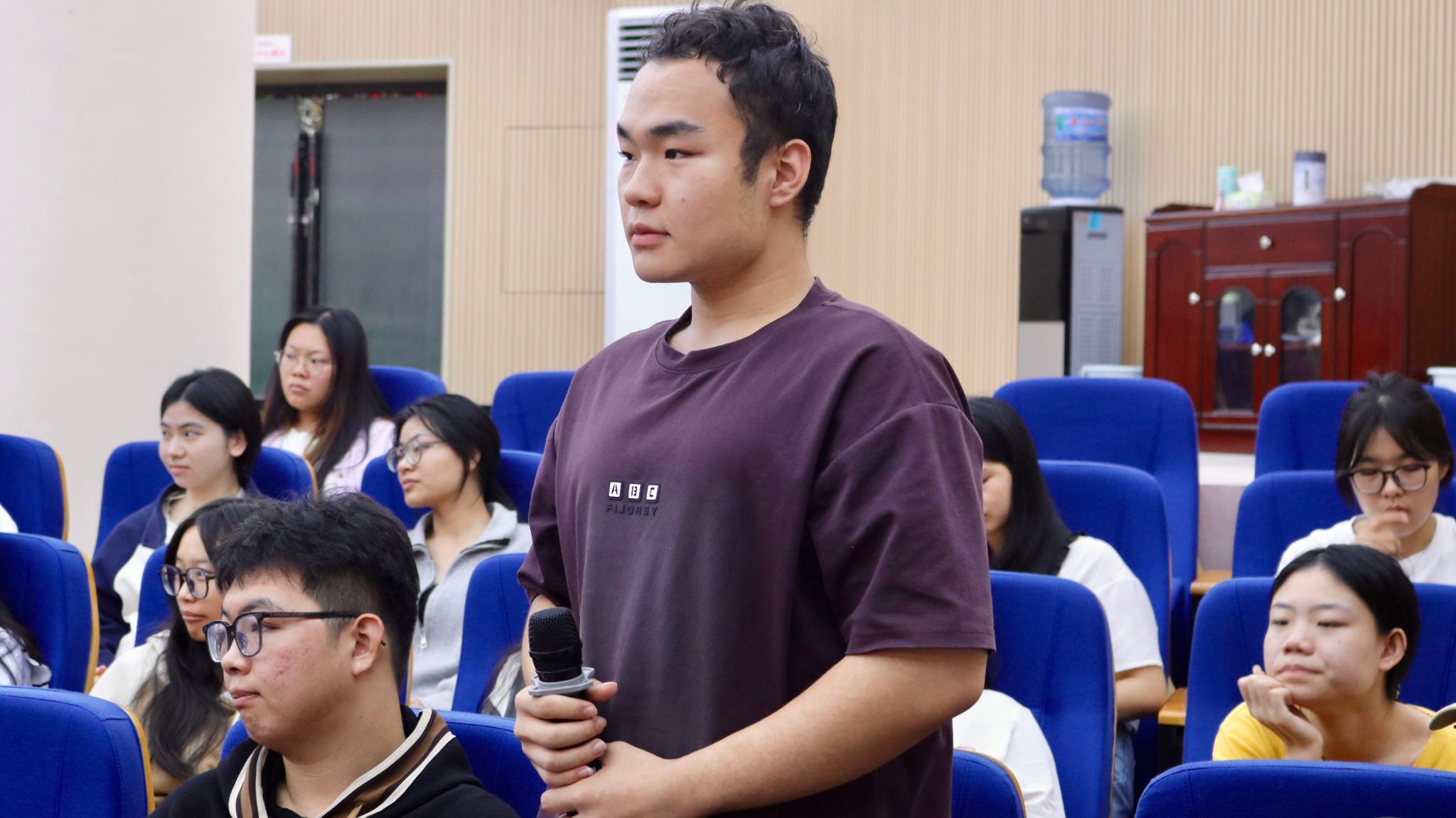 在会议最后,覃院长进一步阐释了考研的意义及重要性,并与台下同学们进行亲切互动。台下的同学们也全情投入,抓住交流机会,积极踊跃地提出自己心中的疑惑,以便更好迎接考研。