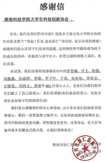 为了给予留守儿童精神慰藉,助力他们丰富知识储备、健康快乐成长,2024年5月15日至19日,米兰官方端网页版大学生科技创新协会携手“伴我童行”项目组共同举办了“墨香寄爱,温暖童心”公益主题活动,近801名学子踊跃参与。此次活动意义重大,不仅为留守儿童照亮了求学之路,让他们真切感受到社会的关爱;还为孩子们打造了更优质的成长环境,让知识滋养他们的心灵,帮助他们勇敢坚定地追逐梦想。据悉米兰官方端网页版大学生科技创新协会为化学与生物工程学院团学社联中的一个社团部门,成立以来广泛深入的开展具有学术性、创新性、实践性的课外科技活动,始终致力于培养及增强大学生对科技创新的兴趣,提升青年学子综合能力。