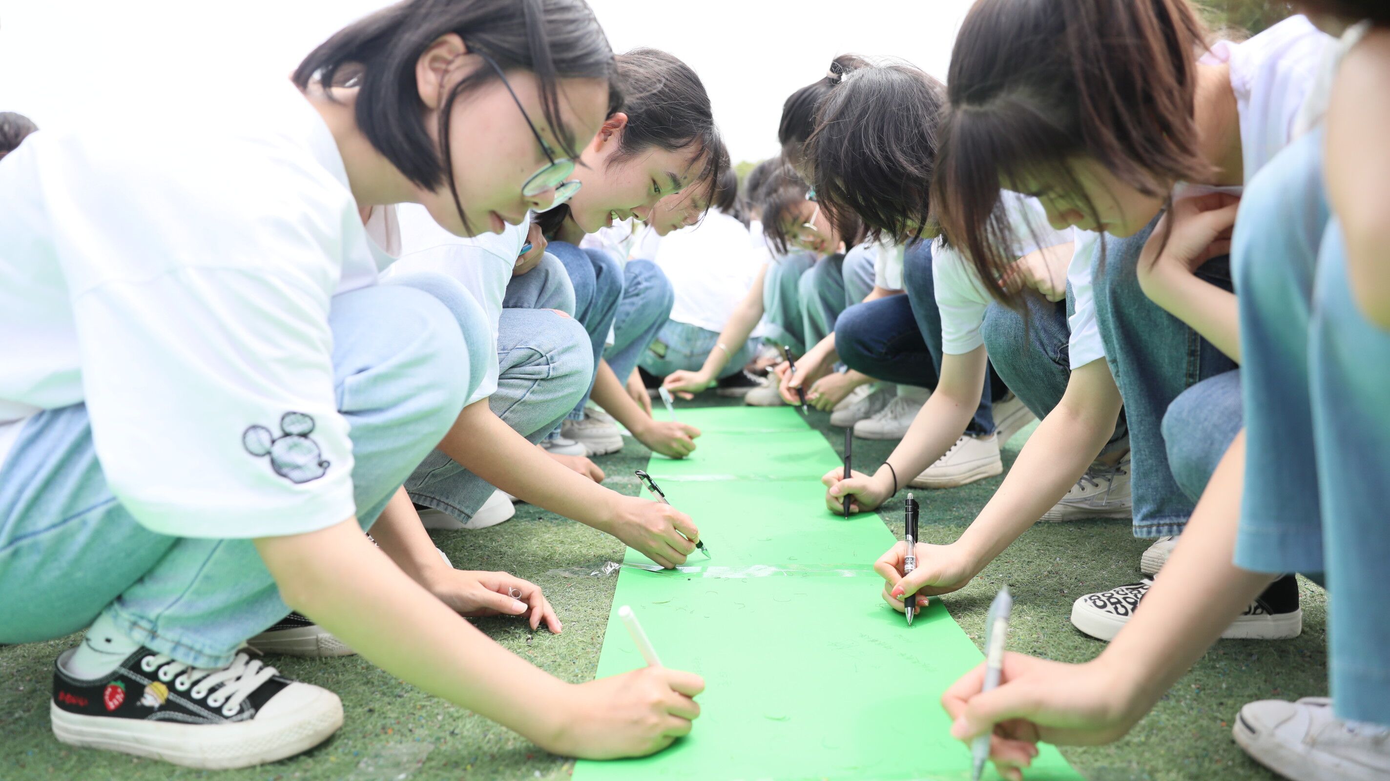 4月22日,第52个“世界地球日”,米兰官方端网页版化学与生物工程学院开展了“珍惜地球资源,共建绿色家园”主题教育活动,在操场上用绿色纸拼成的“CO2↓”图案上面书写绿色环保标语并签字,以迎接世界地球日的到来,唤起更多的人树立爱护地球、保护家园的意识。