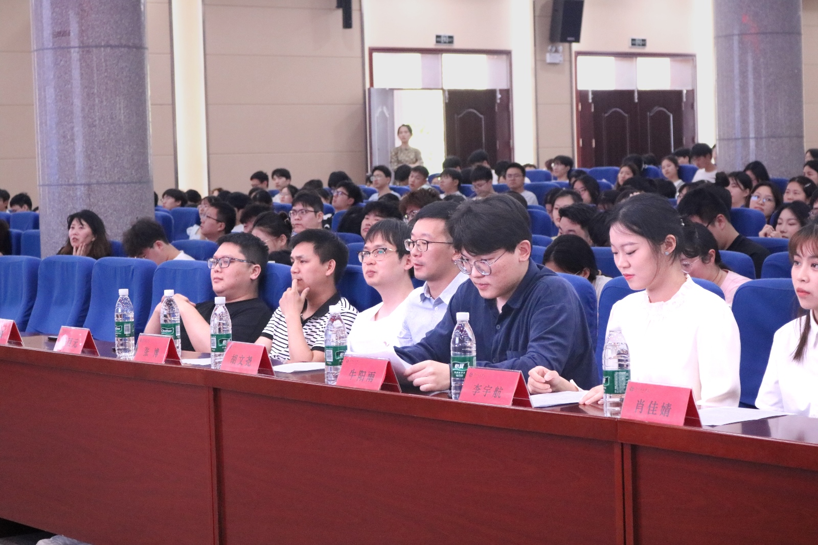 2025届考取研究生代表肖佳婧、李宇航、牛阳雨分别从考研院校专业选择、考研计划制定、考研科目复习、考研心态调节等多个方面分享了考研经验。胡文尧和张博两位教师代表,也结合个人成长与专业学习,传授考研复习技巧,为同学们提供实用指导。充分体现了学院长期以来形成的“传帮带”优良传统。