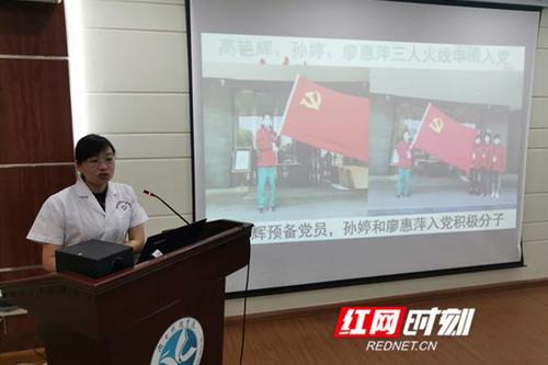 党课中,高艳辉、廖惠萍结合她们驰援湖北省黄冈市抗击新冠肺炎疫情的亲身经历,讲述了她们在抗疫工作和生活中的感人故事和瞬间,分享了她们在援鄂期间的体会和感悟,生动诠释了共产党员的初心使命和敢于担当的精神。在互动交流环节,“我不上谁上”“我是党员我先上”的铿锵话语,让在场的每一位党员同志深刻了解到最真实的一线战“疫”的艰辛和风险,被抗“疫”英雄们舍我其谁的医者情怀深深感动,不时响起阵阵掌声。