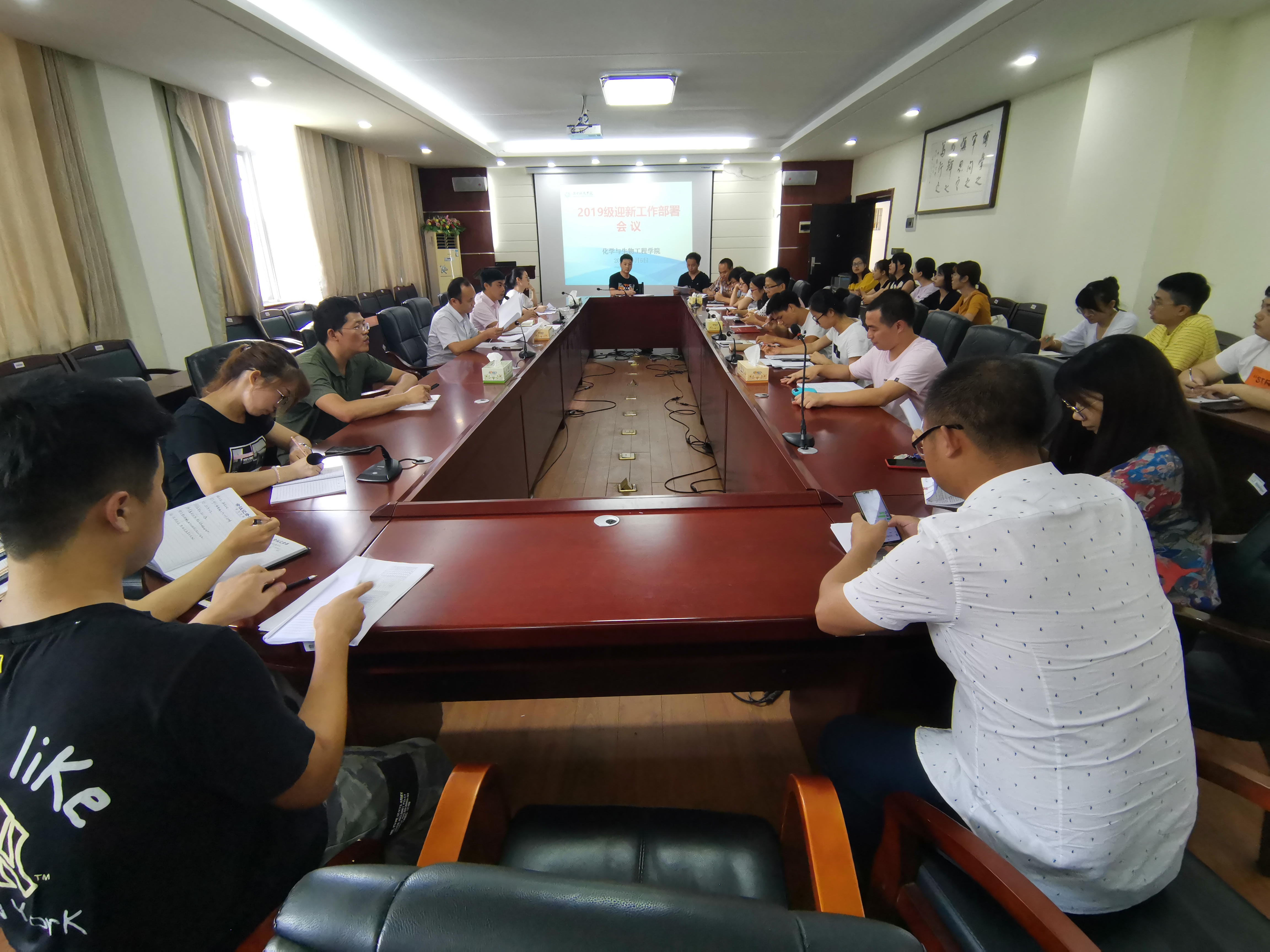 任学兵详细介绍了学院2019级迎新工作方案,通报了2019级新生招生录取、新生班主任分配、新生宿舍分布等基本情况。新生辅导员雷琼对迎新报到流程和注意事项进行了说明。