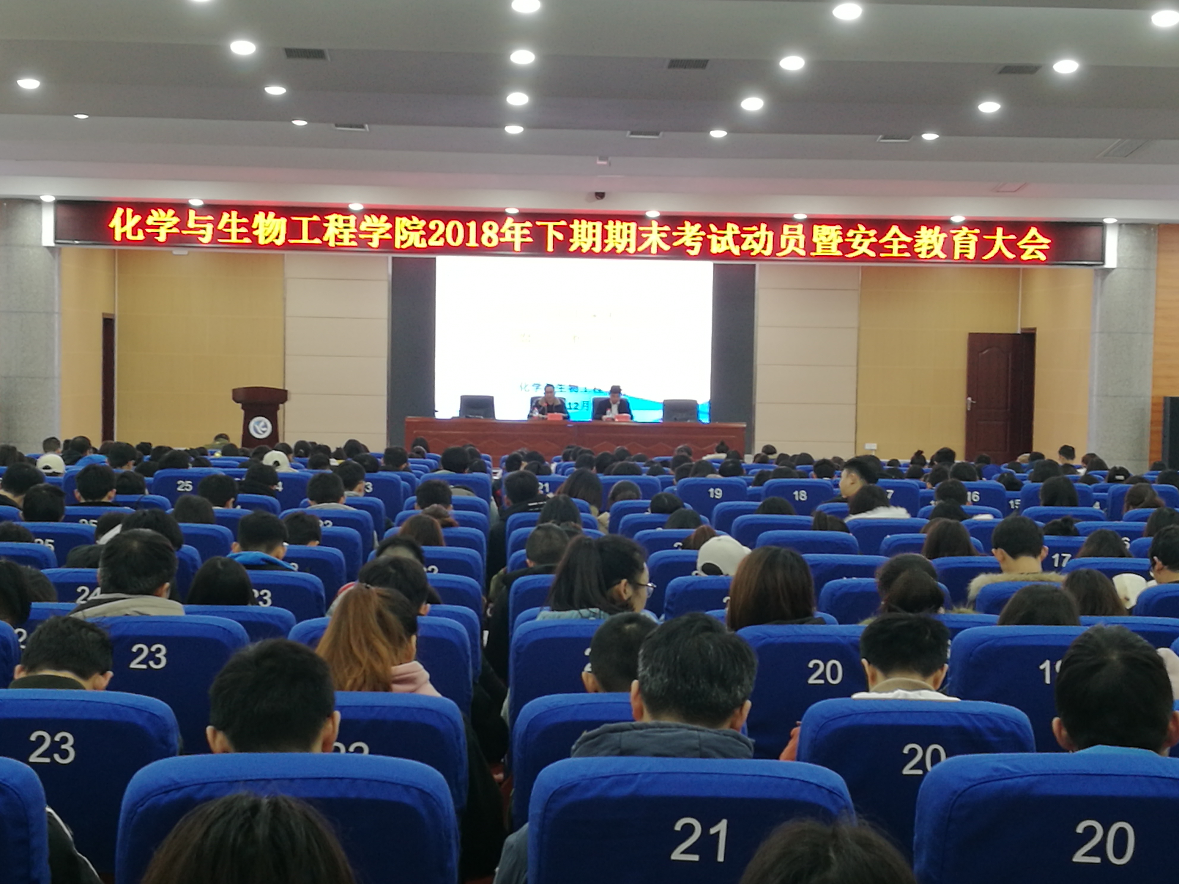 本网讯(通讯员 曾柔琦 匡朵云)1226上午,化学与生物工程学院在潇湘大讲堂举行2018年下期期末考试动员暨安全教育大会。该院副院长刘小文和党总支书副书记任学兵出席会议。会议由该院总支副书记任学兵主持。