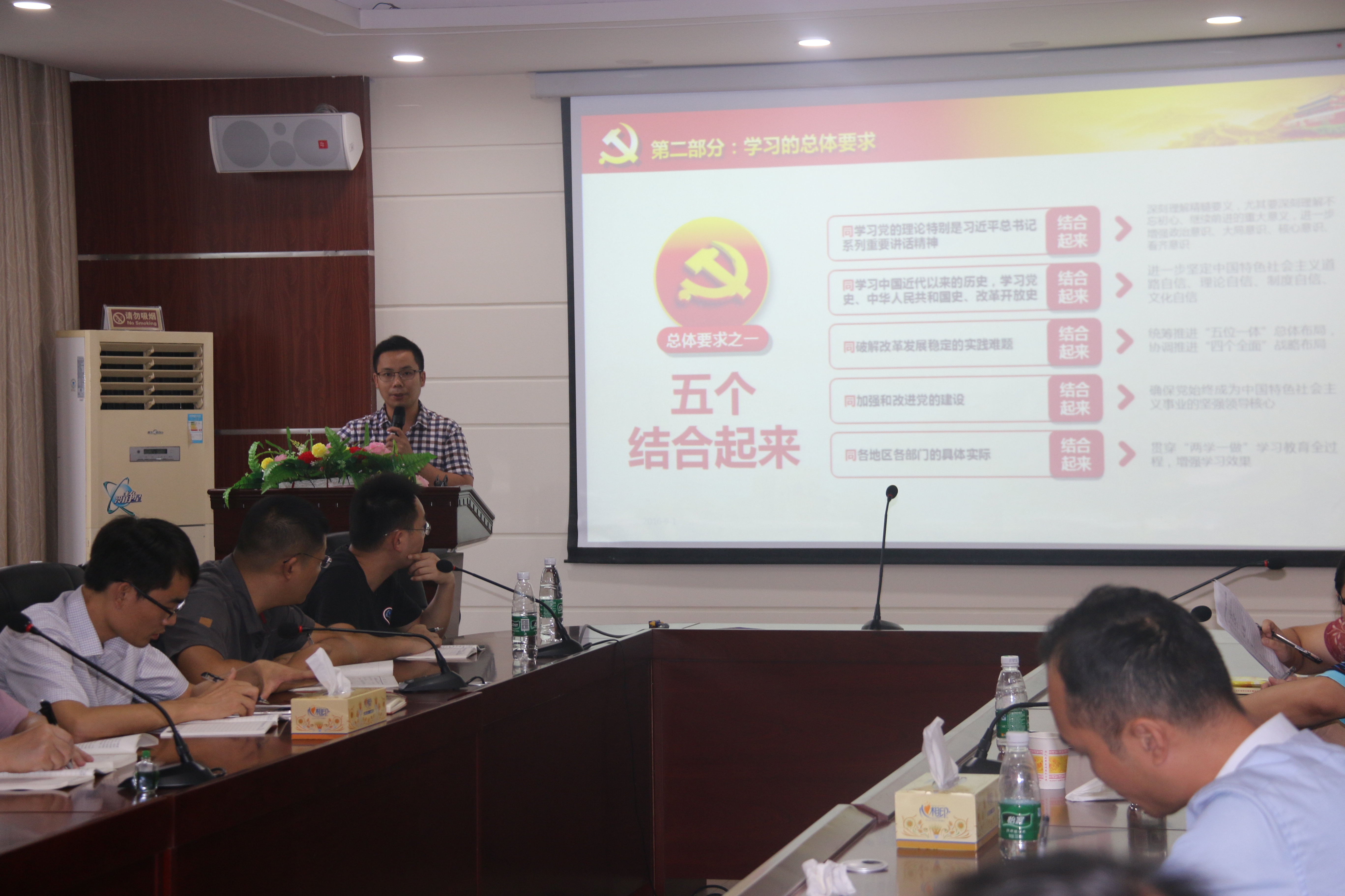 本网讯(通讯员 邓平洋)9月1日下午,我院全体教职工党员在逸夫楼320会议室举行两学一做第三专题集中学习活动,生管教工党支部书记刘小文和化品教工党支部书记欧光川为全体党员上党课。