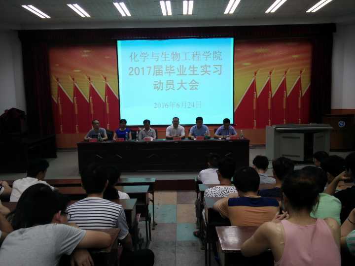 本网讯(夏慧聪)6月24日下午,化学与生物工程学院在明德楼一楼报告厅举行2017届毕业生毕业实习动员大会,进行实习期安全教育,部署安排毕业实习的相关事宜。