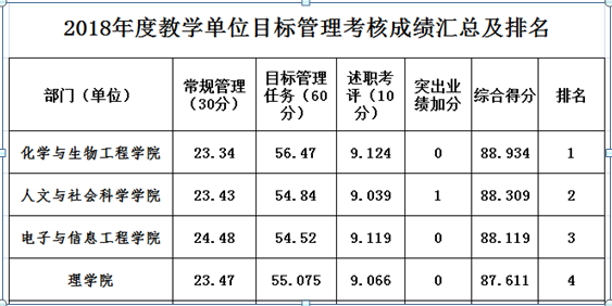 一、教学系列获评“优秀”等次的单位4个,分别为:1.化学与生物工程学院;2.人文与社会科学学院;3.电子与信息工程学院;4.理学院。