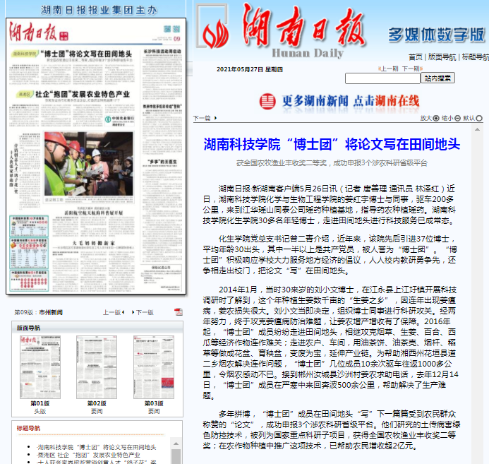 湖南日报:米兰官方端网页版“博士团”将论文写在田间地头