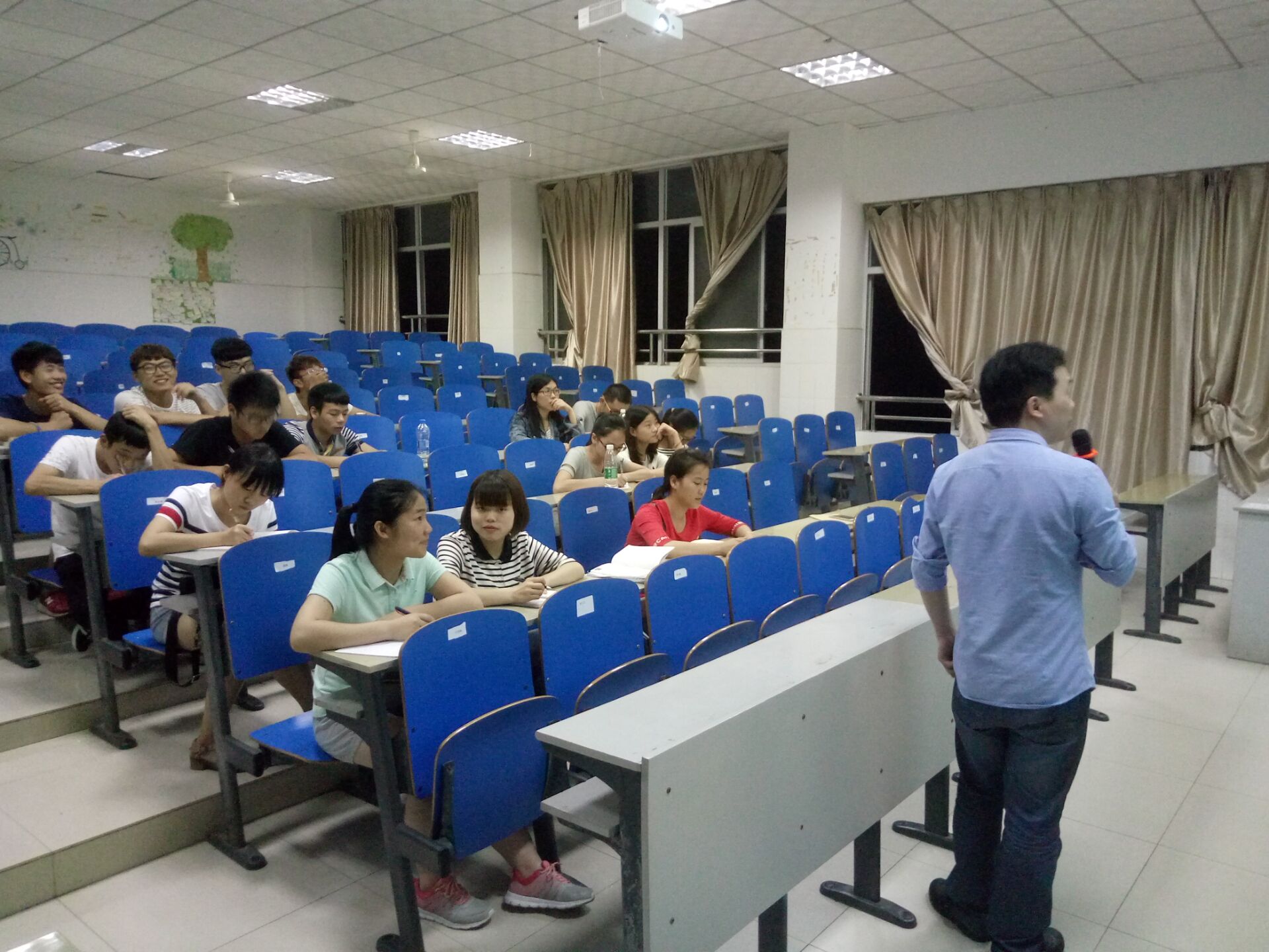 5月30日晚,化生学院学生一支部支部书记邓平洋在逸夫楼424教室为支部党员上党课。