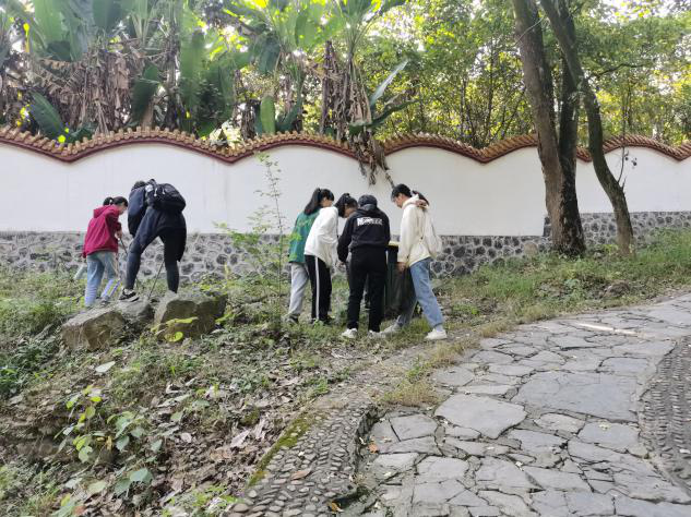 志愿者们到达公园后进行分组,在小组长的带领下分别前往指定区域进行卫生清扫。每一组成员都非常认真,沿着道路仔细检查,有用手捡垃圾的,也用扫帚清扫走道的,还有用铁钳夹不易清扫的垃圾的。在志愿者的一番清扫后,朝阳岩公园变得干净起来。