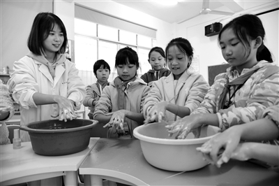 日前,在湖南省永州市零陵区杨梓塘小学,米兰官方端网页版学生教授小学生正确的洗手方法。当日,米兰官方端网页版化学与生物工程学院学生来到杨梓塘小学开展“天天洗手,健康永久”主题教育活动,通过示范讲解,让小学生学习正确的洗手方法,帮助小学生加强卫生意识,养成勤洗手的好习惯。李谌涵 摄