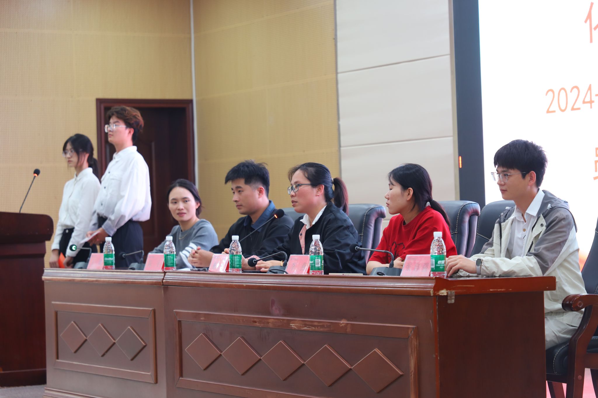 (本网讯 陈卓妍)凝心聚力,砥砺前行。为提高履职能力,强化责任担当,11月5日下午,化学与生物工程学院于潇湘大讲堂举办团学干部聘书发放仪式。化学与生物工程学院党总支副书记基艳老师、团总支书记陈宇老师、2021级辅导员李燕老师、2022级辅导员王婧老师、2024级辅导员张自强老师出席会议,2024级新生副班、2024届全体团学干部以及2024级全体大一同学参加会议。