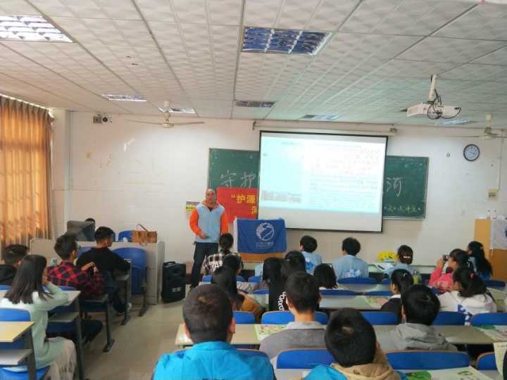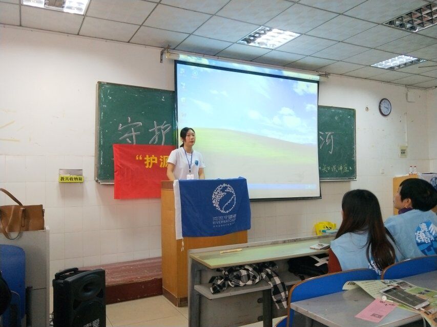 讲座由绿色潇湘河流守望者零陵组的陈龙老师代表讲解,胡采云老师、陈杉代表发言,主要给大家普及了“对河流产生的污染情况有哪些”、“水质监测要点”、“垃圾分类的重要性”等的相关知识,并简要集中的介绍了绿色潇湘河流守望者零陵组,在过去的四年中所处理的案例和遇到的一些问题。
