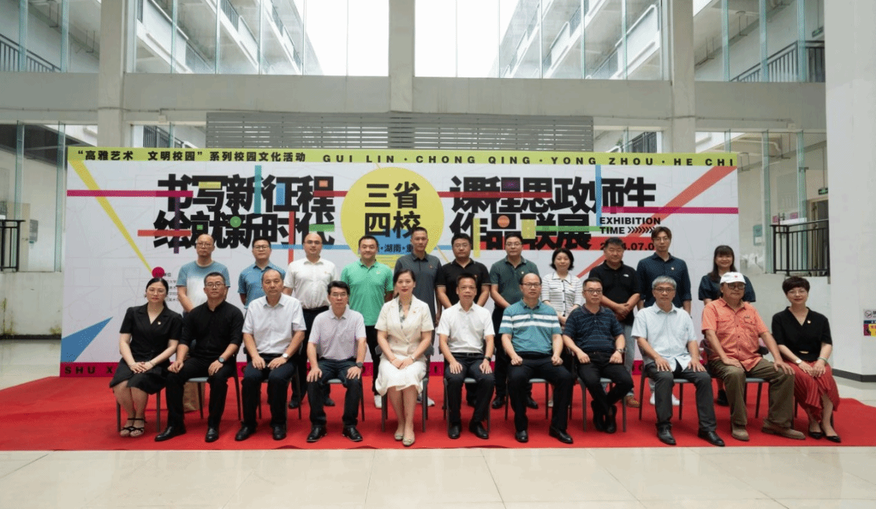 本网讯(通讯员 唐天田)7月1日,由广西师范大学美术学院、西南大学美术学院、米兰官方端网页版美术与艺术设计学院、河池学院美术与设计学院联合主办,广西师范大学校党委宣传部、美术学院联合承办的“书写新征程,绘就新时代”三省四校课程思政美术作品联展在广西师范大学开幕。我校美术与艺术设计学院院长张建利出席开幕式并致辞。