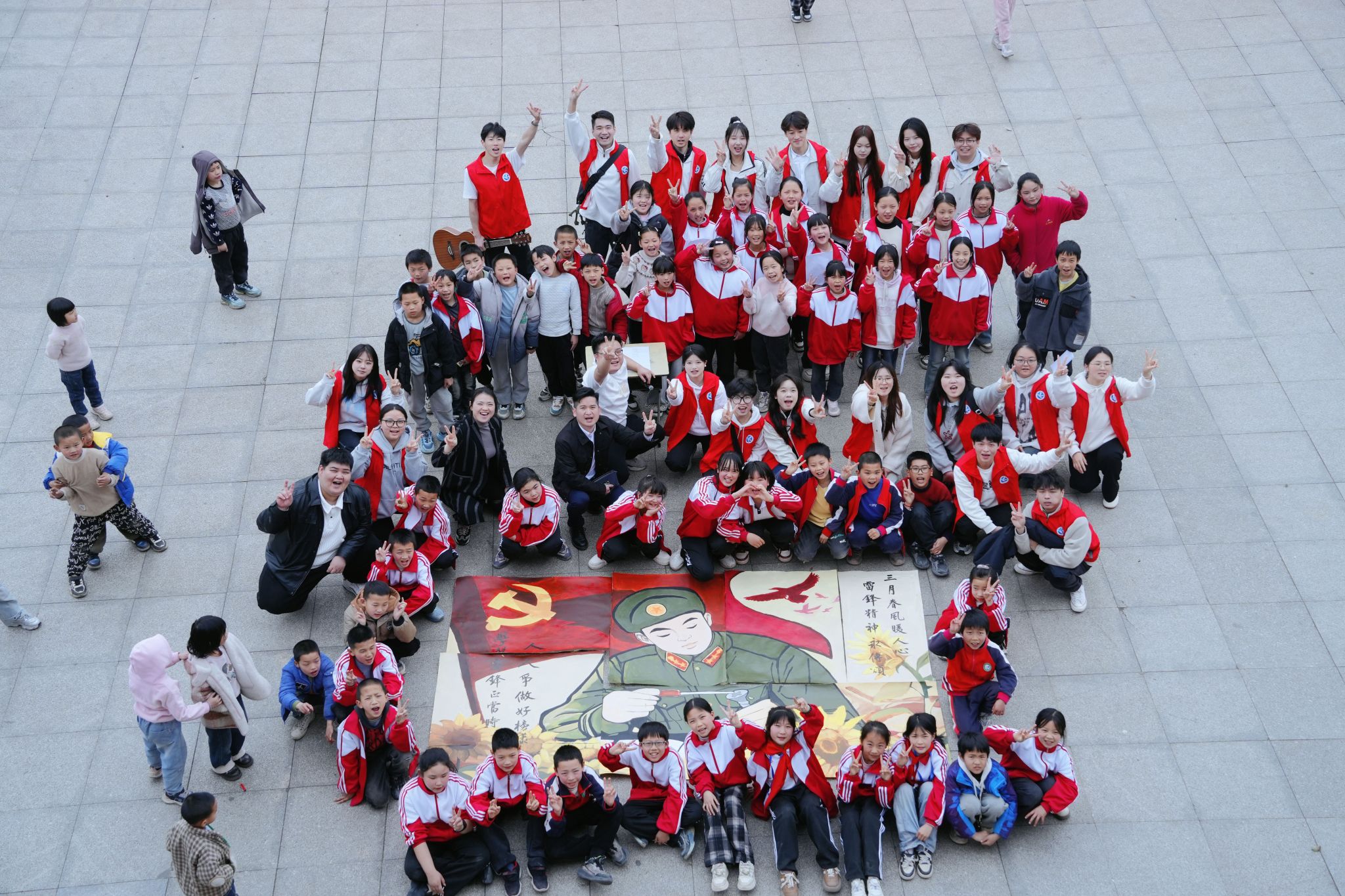 一首歌、一组肖像画、一个个动人故事……美术与艺术设计学院通过举办“颂唱雷锋志,共绘志愿红”系列品牌志愿活动,不断拓展内容、创新形式、丰富载体、打造品牌。该院专职辅导员万涛利用工作之余,作词谱曲原创歌曲《雷锋精神颂》,运用“红色故事+原创音乐+思政内核”来展现追“锋”时刻,颂扬了永不过时的“雷锋精神”,得到广大青年学生追捧热爱。该学院还组织学生实处“运笔”,创新思政教育新形式,用100余组国画、油画、剪纸画等载体生动展现雷锋同志全心全意为人民服务的感人故事。