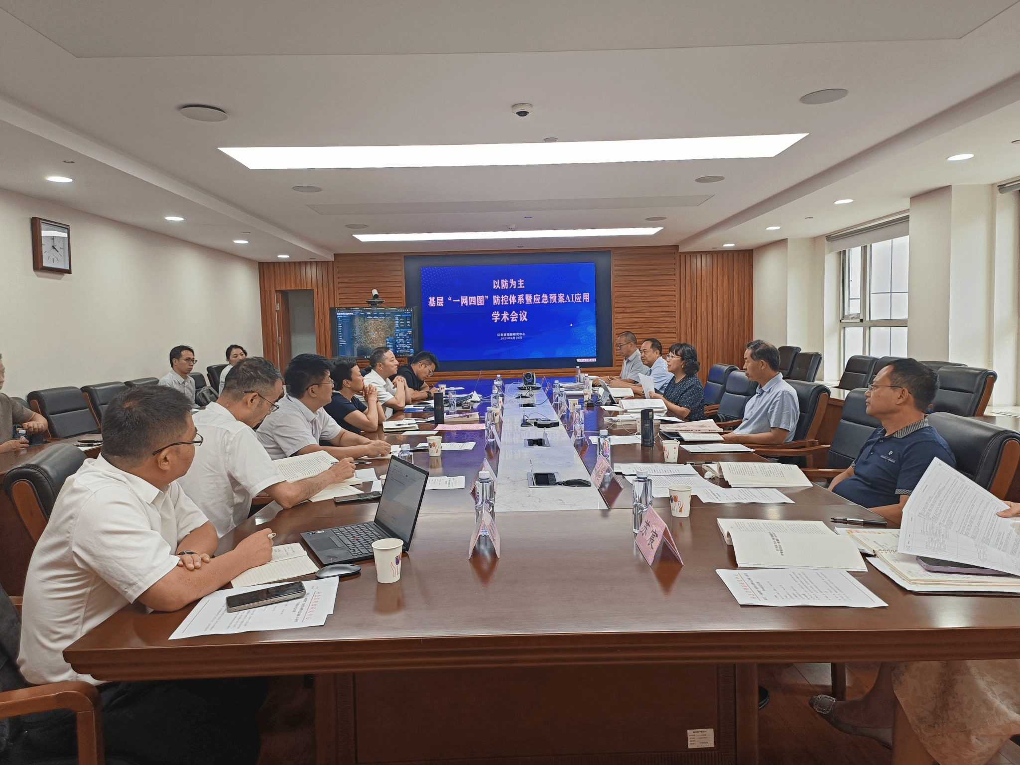 本网讯(通讯员 彭涛凯)8月18日,经济与管理学院在应急管理部研究中心承办“基层以防为主‘一网四图’防控体系暨应急预案AI应用”全国学术会议,来自应急管理领域的权威专家及相关技术研发单位30余人参加会议,湖南省应急管理厅党委委员、副厅长李兵荣和应急管理部研究中心党总支书记、主任孙庆国应邀出席会议并讲话。