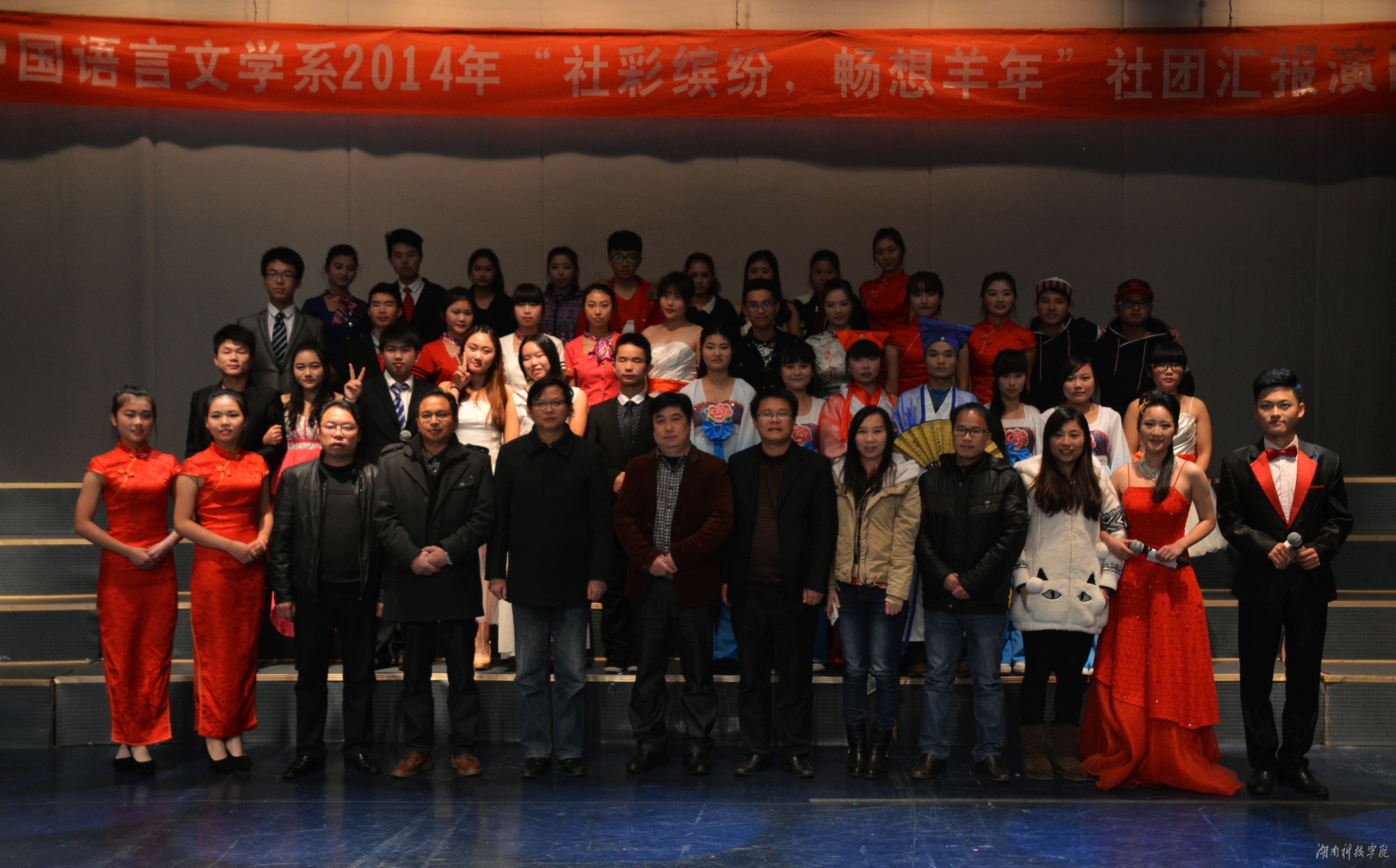 本网讯(记者 袁玲玲 陈娟)“社彩缤纷迎新春、携手并进谋发展”,12月26日晚,音乐厅人潮涌动、掌声阵阵,中文系2014年“社彩缤纷、畅想羊年”社团汇报演出成功举行。中文系系主任潘雁飞等师生共同观看晚会。
