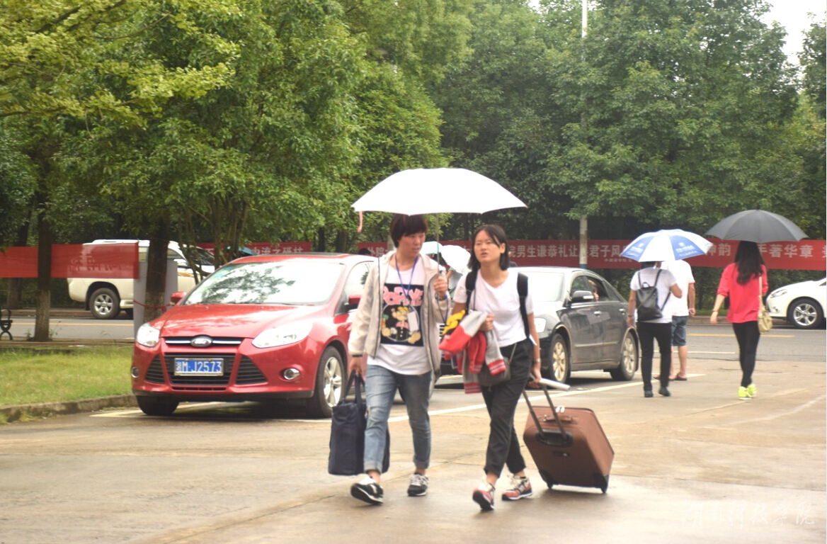 校园里,只要有该院新生的地方,就能看到志愿者们忙碌的身影。他们常常是刚刚送完一个新生,又接着送下一个。志愿者崔豪帅手里拖着一个行李箱,“这是我送的第6个新生了”,汗流浃背的他骄傲地说。