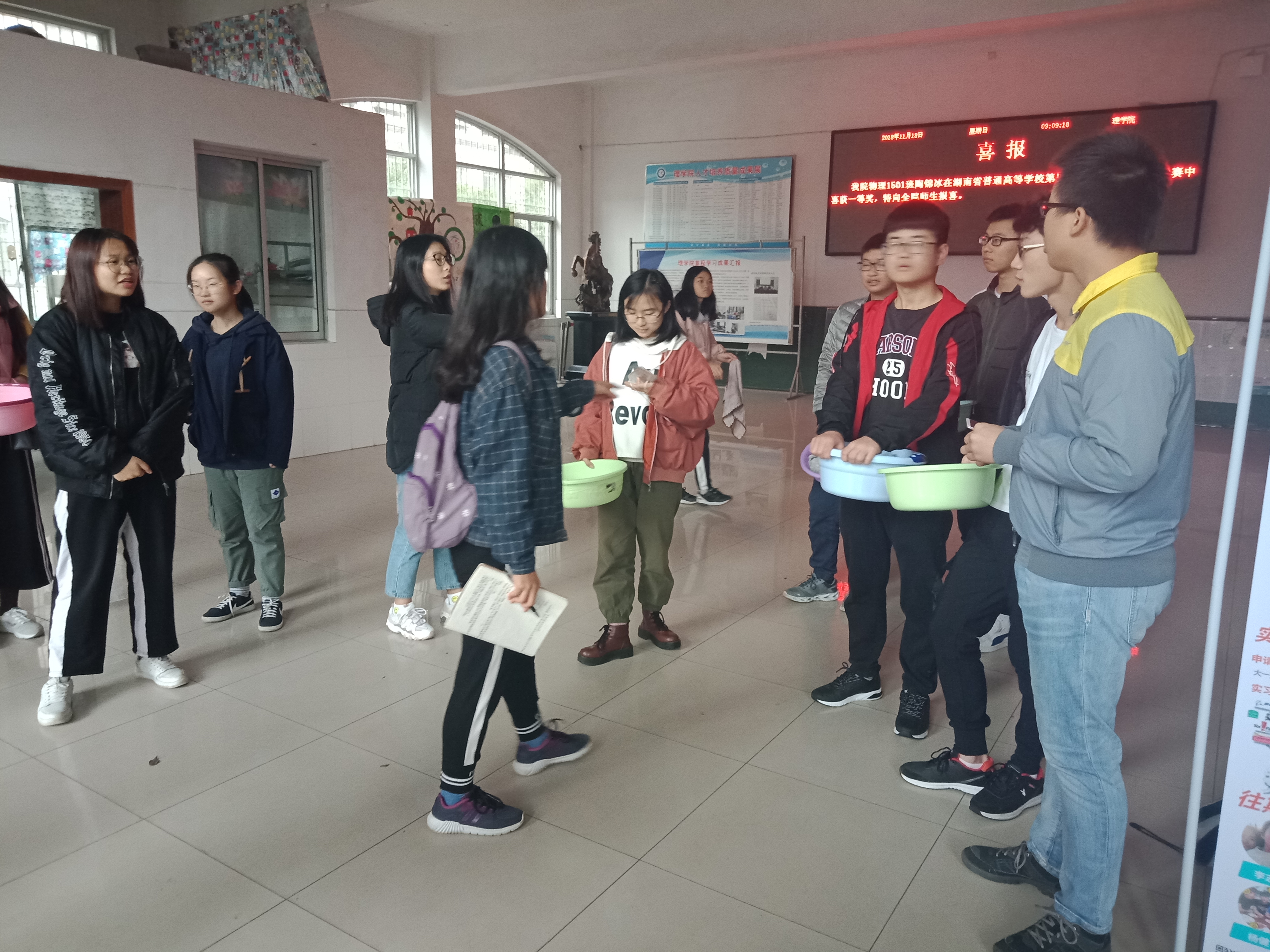 本网讯(通讯员刘亚雨)为增强学生环保意识,创造良好的学习环境,理学院青年志愿服务团于11月18日上午9点在明理楼开展以“服务他人”为主题的清洁楼道活动,十余名志愿者参加了本次活动。