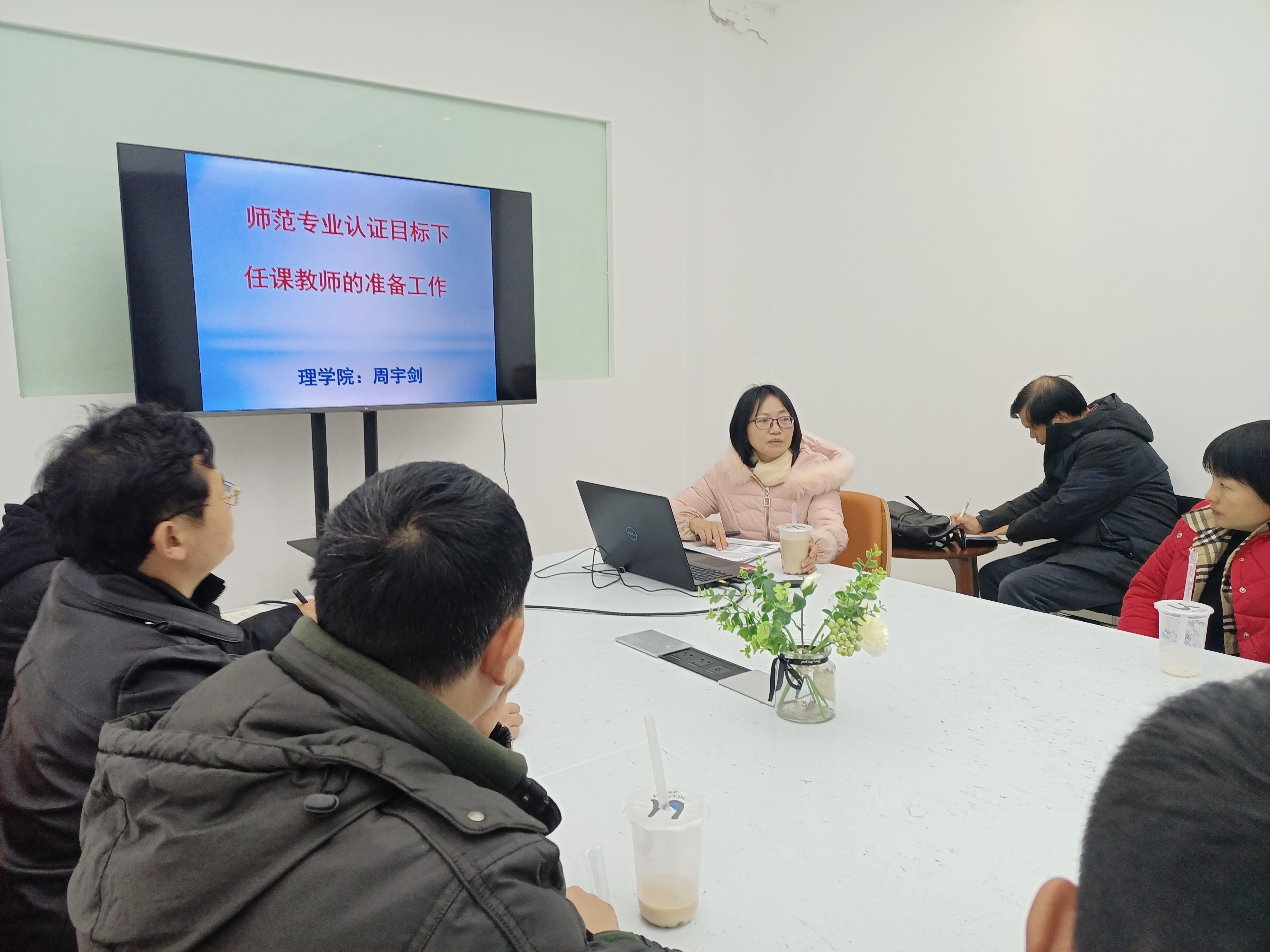 为响应教育部《普通高等学校师范类专业认证实施办法(暂行)》政策,积极备战师范生专业认证,理学院应用数学系周宇剑教授于12月1日下午,在创客空间举办了以《师范专业认证目标下任课教师的准备工作》为题的专题报告会。理学院院长唐耀平、党总支书记唐卫华,应用数学系全体教师聆听了本次报告会。