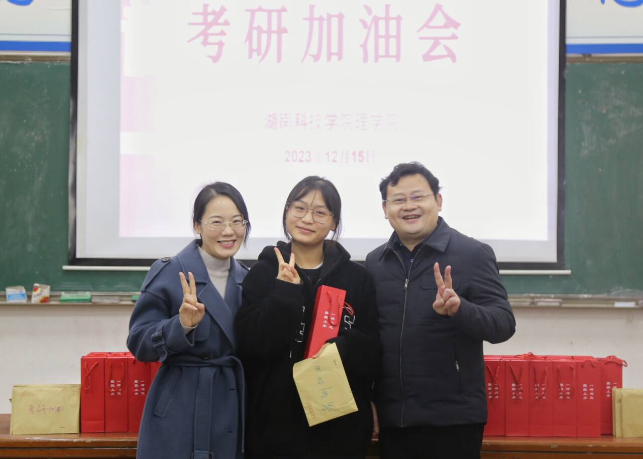 本网讯(通讯员:黄佳乐)为帮助考研学子缓解备考压力,鼓舞考研士气,传递温暖和力量。理学院于12月15日下午在明理楼101举行“考研加油会”,理学院党总支书记刘华和离退休工作处处长唐卫华一同为考研学生送上温暖祝福。