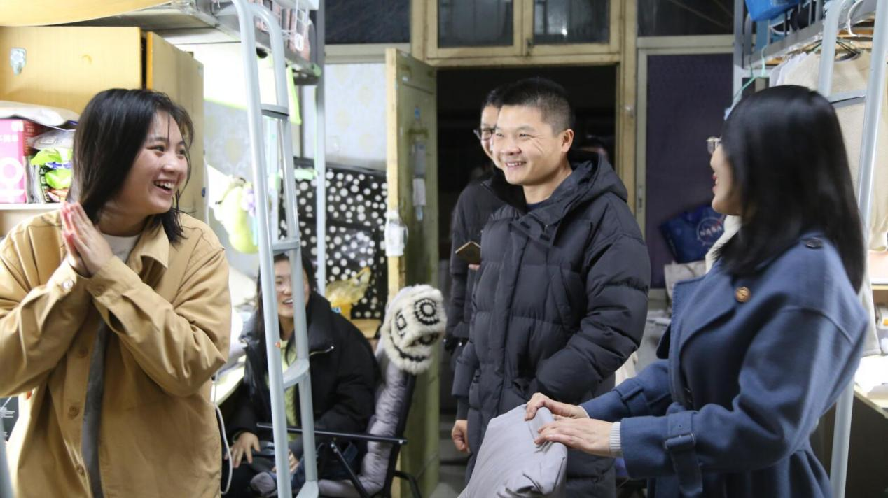 走访过程中,老师们在寝室里耐心询问了同学们的备考计划,充分了解了每个同学的学业和生活状况。鼓励大家不仅要努力学习,更要注意自身的健康、做好防寒保暖。此外,老师们还强调了用电安全问题,详细了解了寝室的电器使用情况,并提醒同学们要避免使用劣质电器,不私自乱接电线,确保安全用电。
