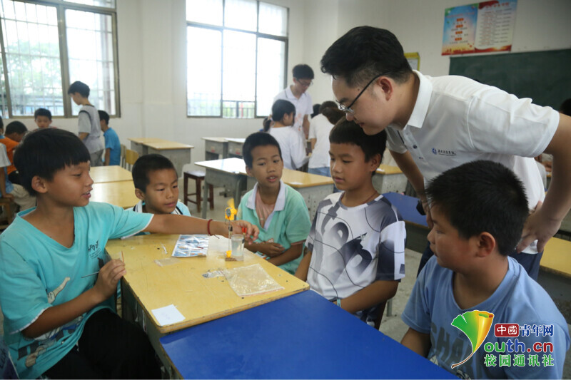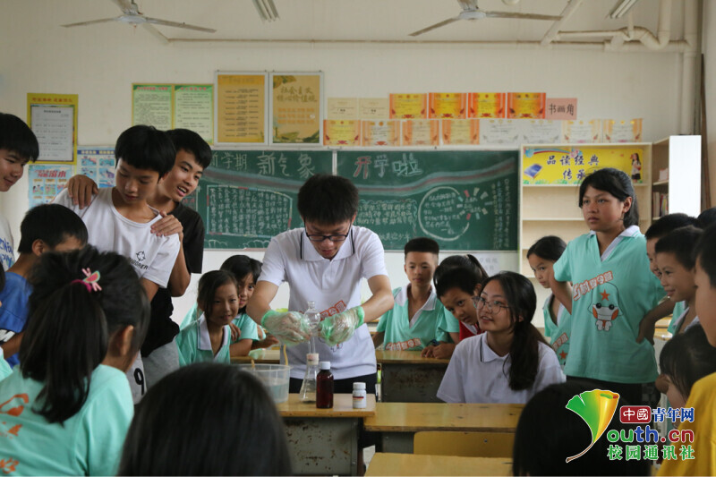 中国青年网永州7月5日电(通讯员 周亮君 刘德江 杜俊杰)7月2日,米兰官方端网页版理学院“理学先锋”乡村振兴促进团赴江华瑶族自治县竹园寨九年制学校开展暑期“三下乡”社会实践活动。团队通过举办科学夏令营的形式,带领该校100名学生开启科学探索之旅,引导他们在一个个有趣的实验中感受科学力量,树立远大理想,坚定大国自信。