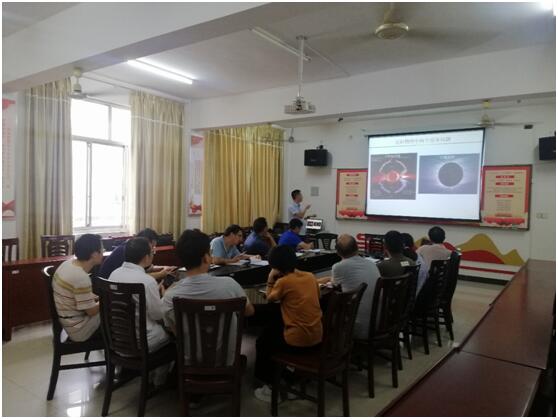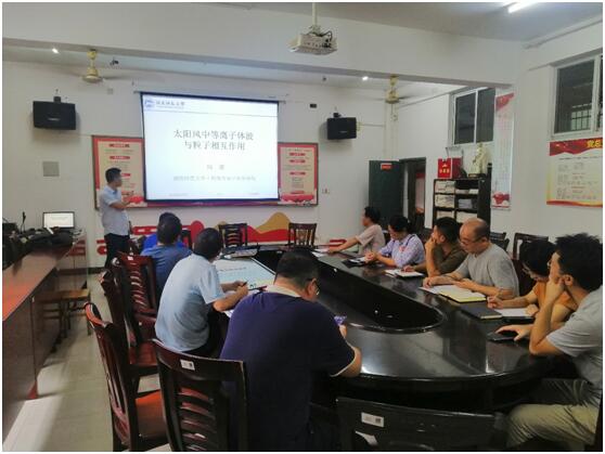 本网讯(通讯员 高海峡)2021年9月7日下午,湖南师范大学向梁博士应邀来理学院举办主题为“太阳风中等离子体波与粒子相互作用”的学术讲座。理学院院长唐耀平、党总支书记唐卫华、副院长孔永红及物理系老师等参加讲座。