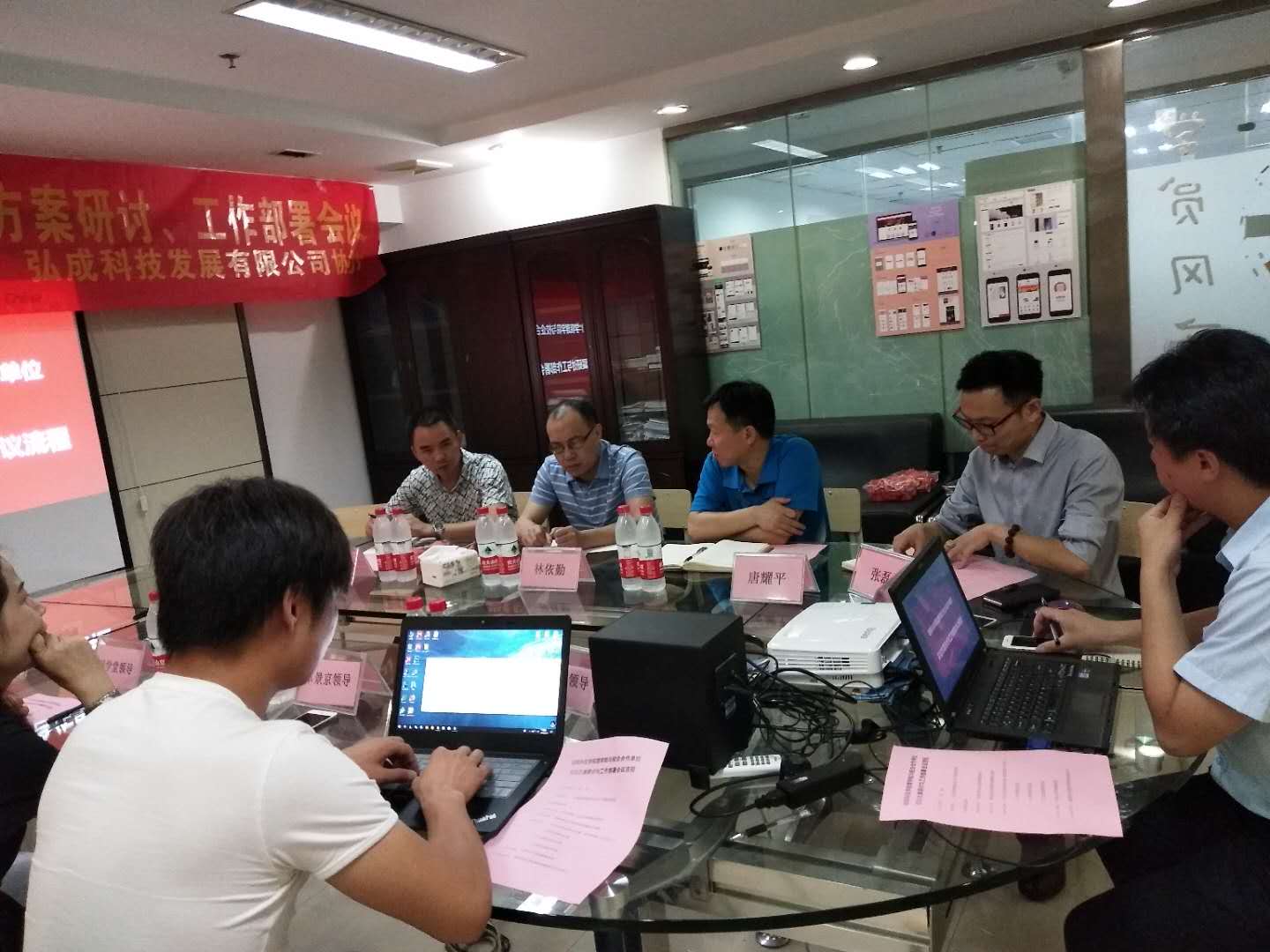 6月14日,米兰官方端网页版理学院与校企合作单位实训方案研讨与工作部署会议,在弘成科技湖南分公司会议室举行。尚学堂,卓景京,弘成科技三家培训机构教学总监与我院唐耀平、林依勤、刘铮三位老师与会,弘成科技湖南分公司营销总经理唐胜主持会议。