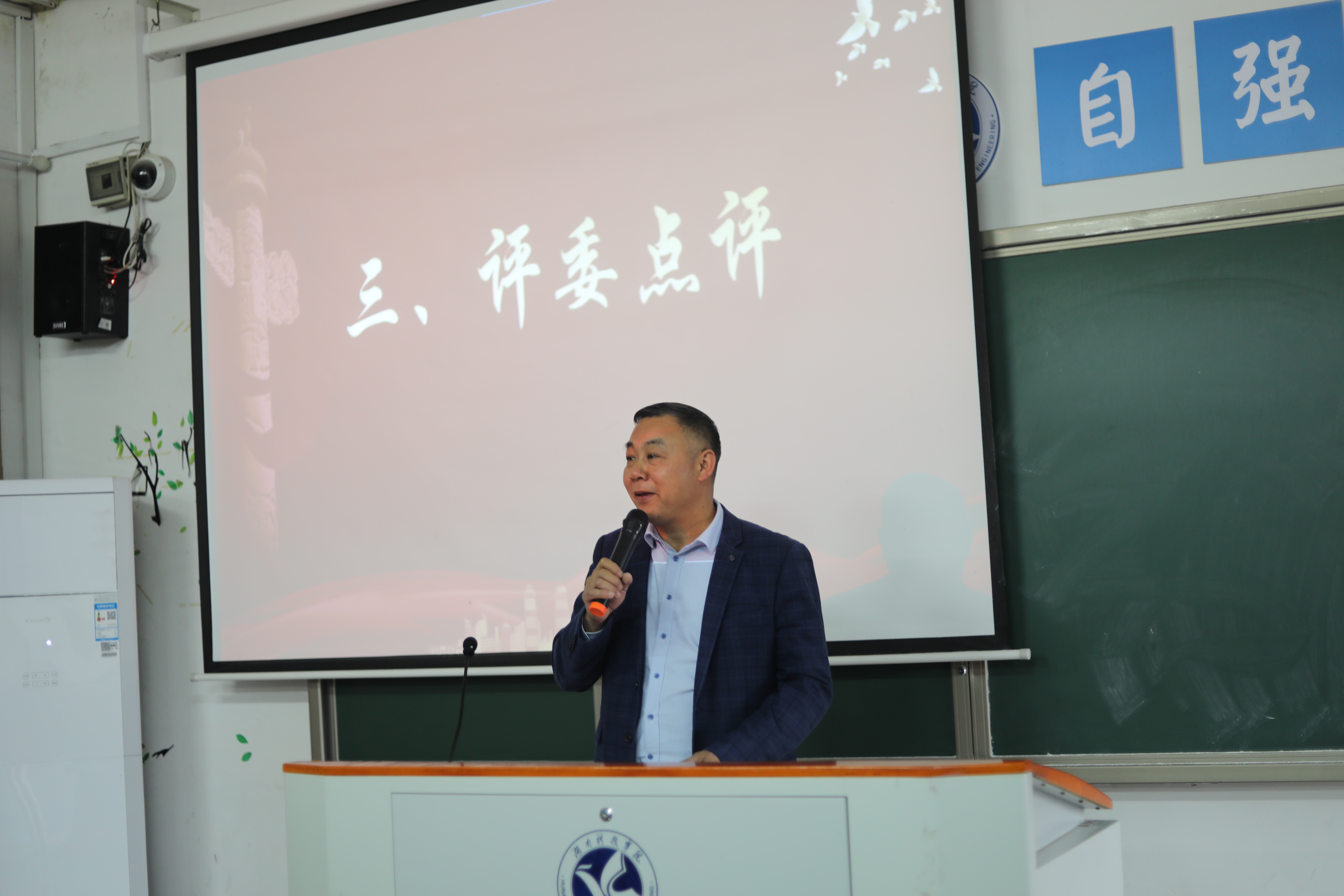 “今天同学们在讲台上从容发挥,展示各自的风采和智慧,对课堂的把握和理解非常深刻,充分展现了思政学子的学科素养,是马克思主义学院的骄傲。”赛后,文加友老师充分肯定了本次参赛选手的能力和水平,赞扬了同学们精彩的表现和创意的教学构思,并针对学科价值体现和选题角度方面提出以下四点宝贵建议:第一,思政课要坚持以线起条,突出学科育人价值;第二,在教学设计和教学过程中培养学科思维品质,树立正反面多思维认知,从而更好的锻炼学生思维;第三,以点带面,采取的情景角度不应太多,用一两个案例贯穿教学过程;第四,选取日常生活中常见的例子设计教学情境,采用启发式教学,注意从低级思维到高级思维的问题设计。