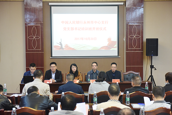 本网讯(通讯员李艳)为深入贯彻落实全面从严治党要求,进一步加强基层党组织建设,10月20日,正值党的十九大召开之际,我校为中国人民银行永州市中心支行举办了一期党支部书记专题培训班。该行机关党委书记、党委委员、工会主任雷树清,马克思主义学院院长廖雅琴等出席。