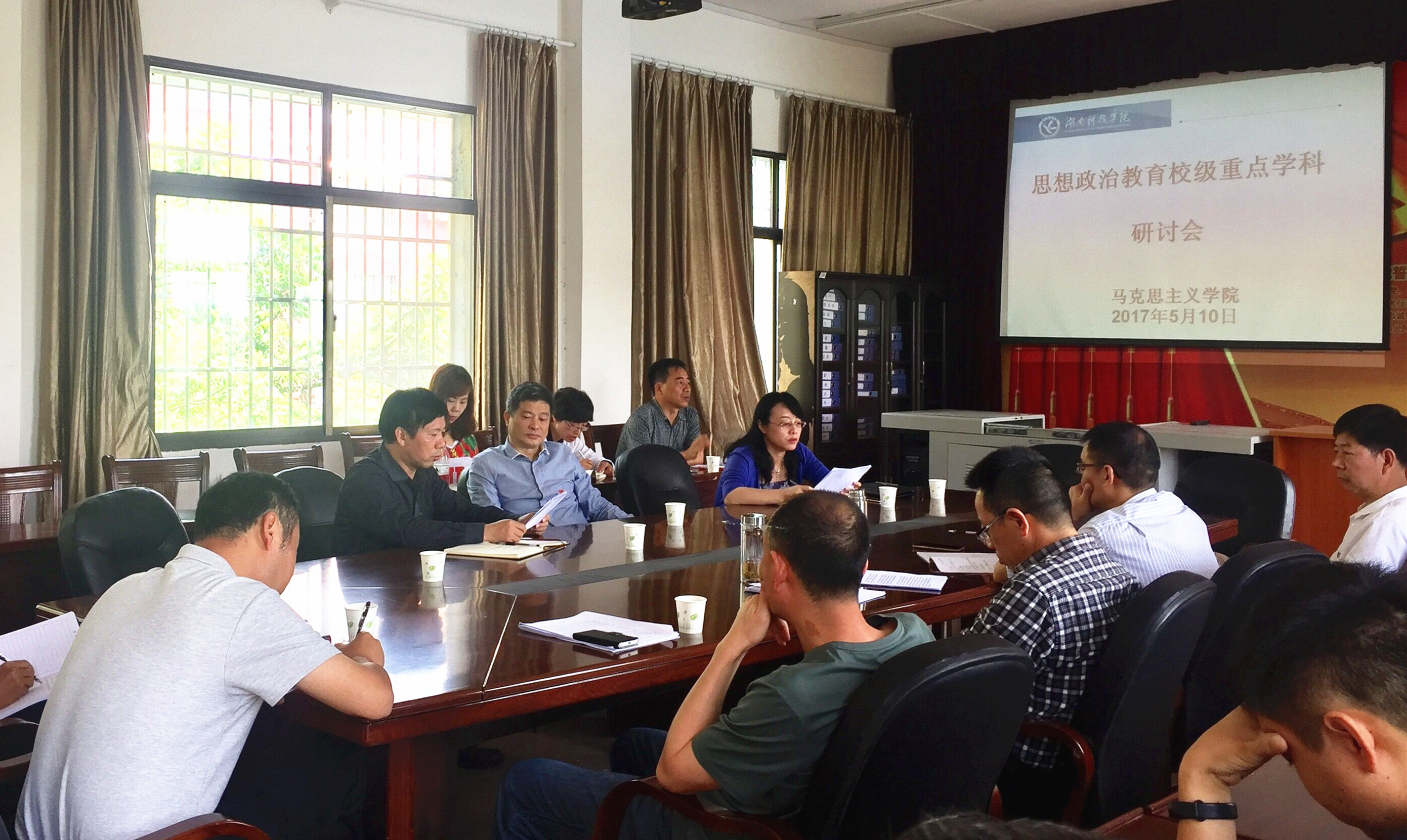 本网讯(通讯员 周芳检 李艳)“凝心聚力,打造一流研究团队;突出特色,建设一流重点学科。”5月10日上午,思想政治教育校级重点学科研讨会在鹤鸣楼405会议室召开,湖南省“十二五”重点建设学科—思想政治教育学科带头人、校党委副书记唐艳明到会指导,马克思主义学院院长廖雅琴主持会议。