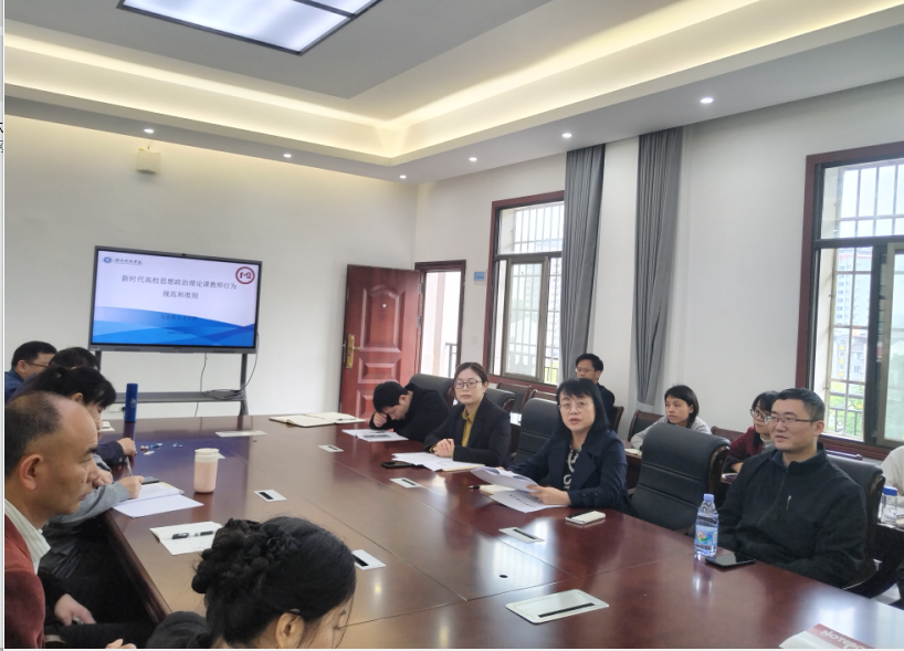 4月10日上午,马克思主义学院在鹤鸣楼405召开全院教职工大会,专题学习了《新时代高校思想政治理论课教师行为规范和准则》。