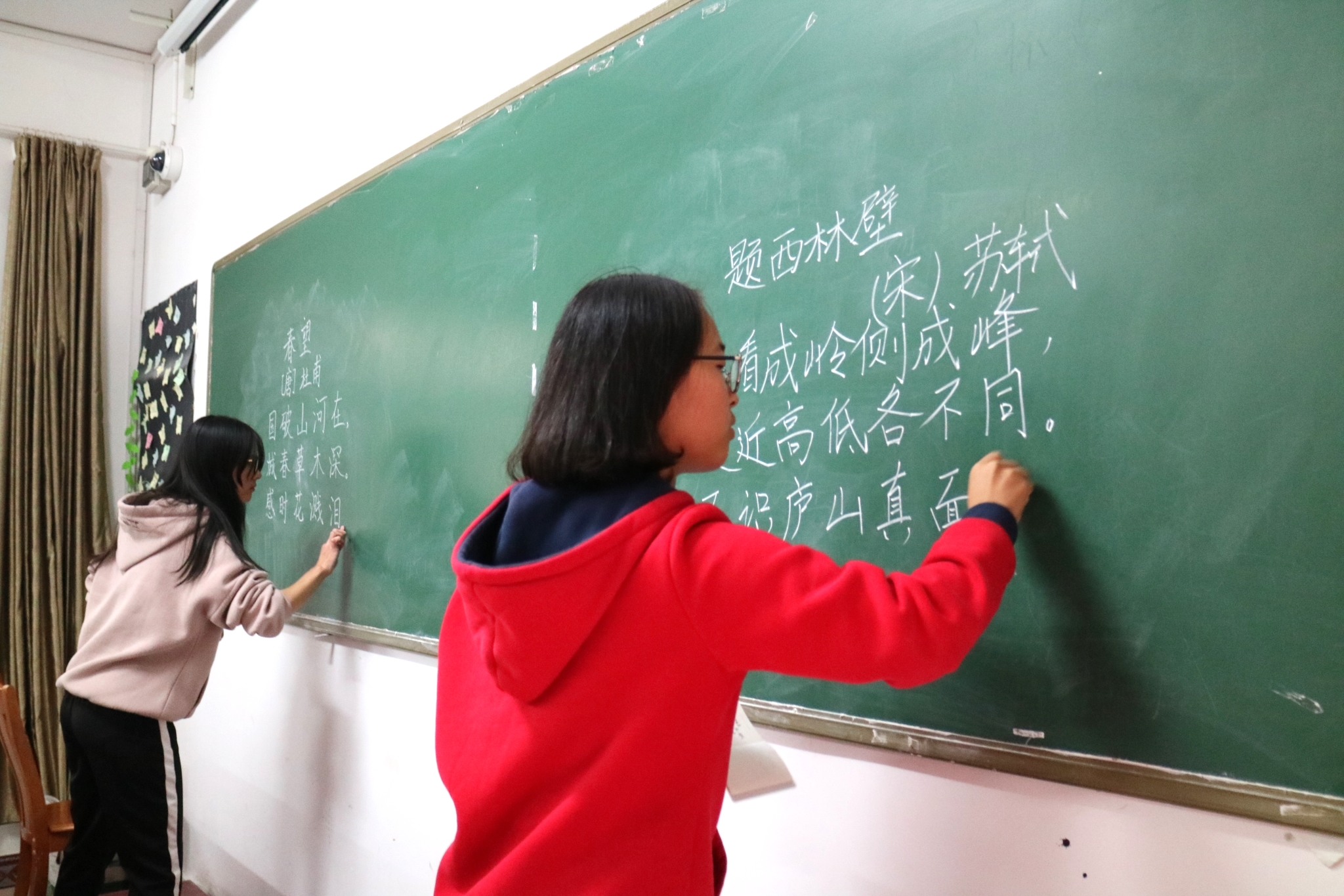 本网讯 (通讯员 彭超 张亚娟)为提升学生粉笔字书写能力,提高师范生的专业技能,11月8日下午,马克思主义学院在鹤鸣楼举行第三届粉笔字竞赛。