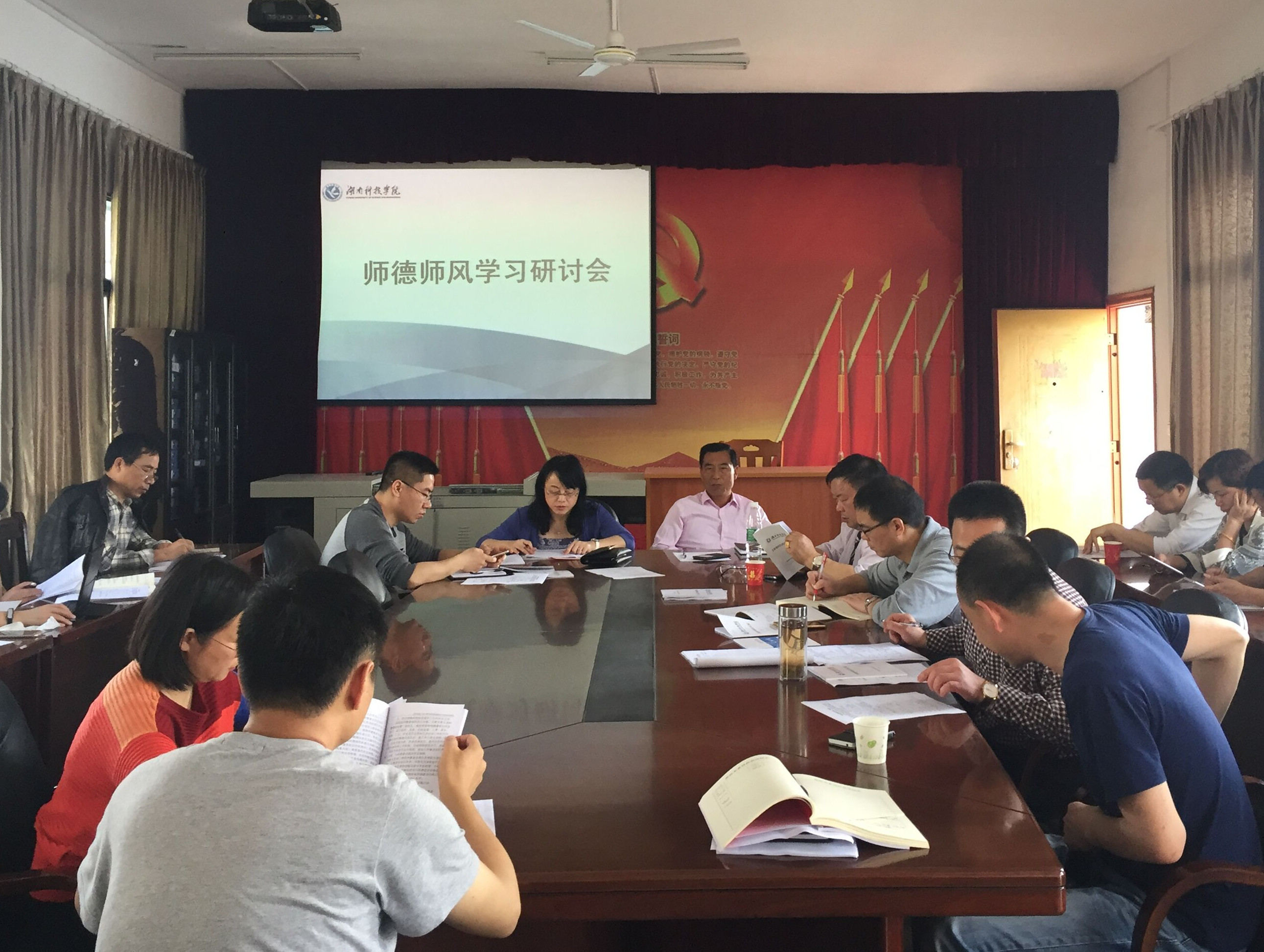 该院党总支书记唐森树书记首先组织全体教师认真学习了习近平总书记2014年9月10日在同北京师范大学师生代表座谈时的讲话精神以及《教育部关于建立健全高校师德建设长效机制的意见》文件精神。他强调,作为高校思政课教师一定要加强师德师风建设,坚持教书和育人相统一,坚持言传和身教相统一,坚持潜心问道和关注社会相统一,坚持不懈培育和弘扬社会主义核心价值观,做社会主义核心价值观的坚定信仰者、积极传播者、模范践行者,为培养社会主义事业的建设者和可靠接班人作出贡献。