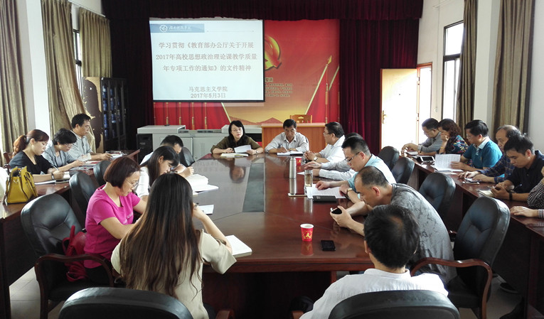 会上,该院院长廖雅琴带领全体教师认真学习了《教育部办公厅关于开展2017年高校思想政治理论课教学质量年专项工作的通知》,并就如何落实文件精神,在2017年打一场漂亮的提高思政课质量和水平的攻坚战,组织全体教师进行了深入讨论。