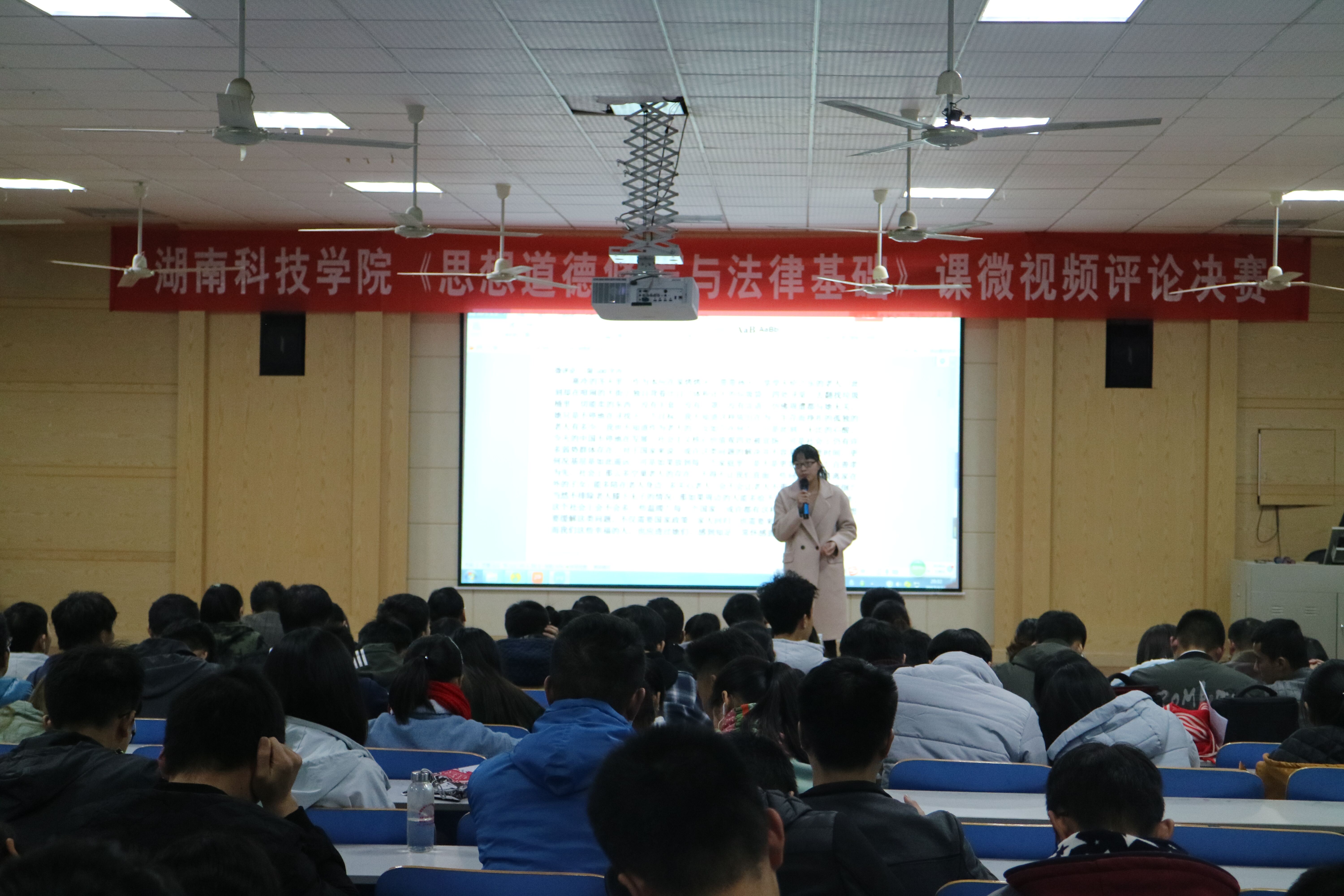 本网讯 (通讯员贺茶湘彭超)为贯彻落实党的十九大精神,深入学习习近平新时代中国特色社会主义思想,推动我校思想政治理论课教学改革。12月8日晚,马克思主义学院在致远楼举行《思想道德修养与法律基础》课微视频微评论评比决赛。该院党总支书记唐森树以及教务处、教学质量管理处的相关负责人等出席并担任评委。