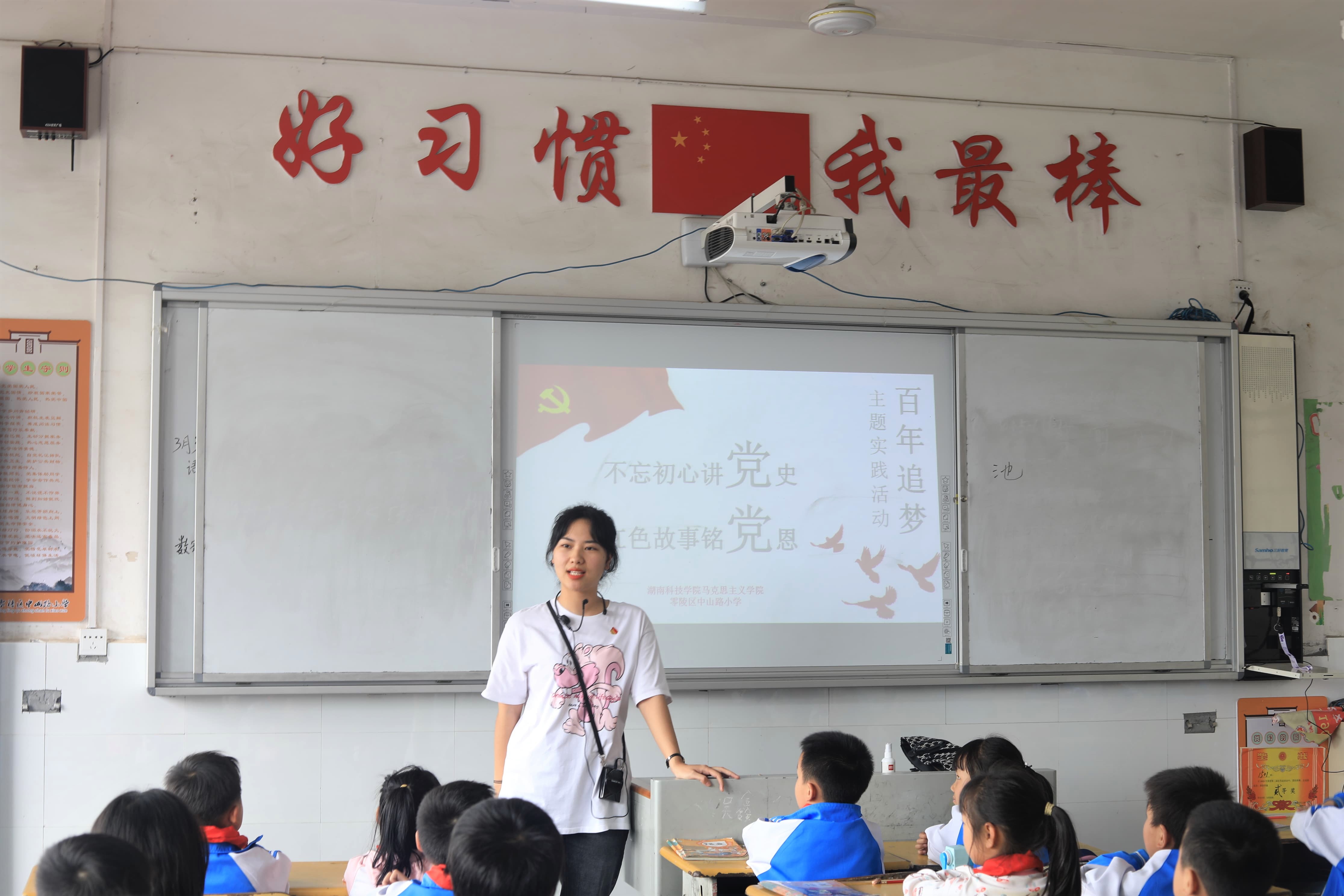 本网讯(通讯员 谢松林)峥嵘百年,共庆华诞。2021年是中国共产党成立100周年,也是“两个一百年”奋斗目标的重要历史交汇点。在中国共产党百年华诞即将来临之际,米兰官方端网页版马克思主义学院思政专业学生发挥专业优势,积极承担党史知识宣讲责任,与永州市零陵区中山路小学建立长期合作关系,组织学生前往学校进行义教活动,将党史教育带入小学课堂,引导学生知党史,感党恩。