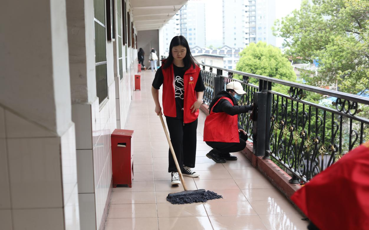 志愿者们热情高涨,积极地投入到此次清扫活动中,用实际行动践行志愿服务精神,使教学楼焕然一新。