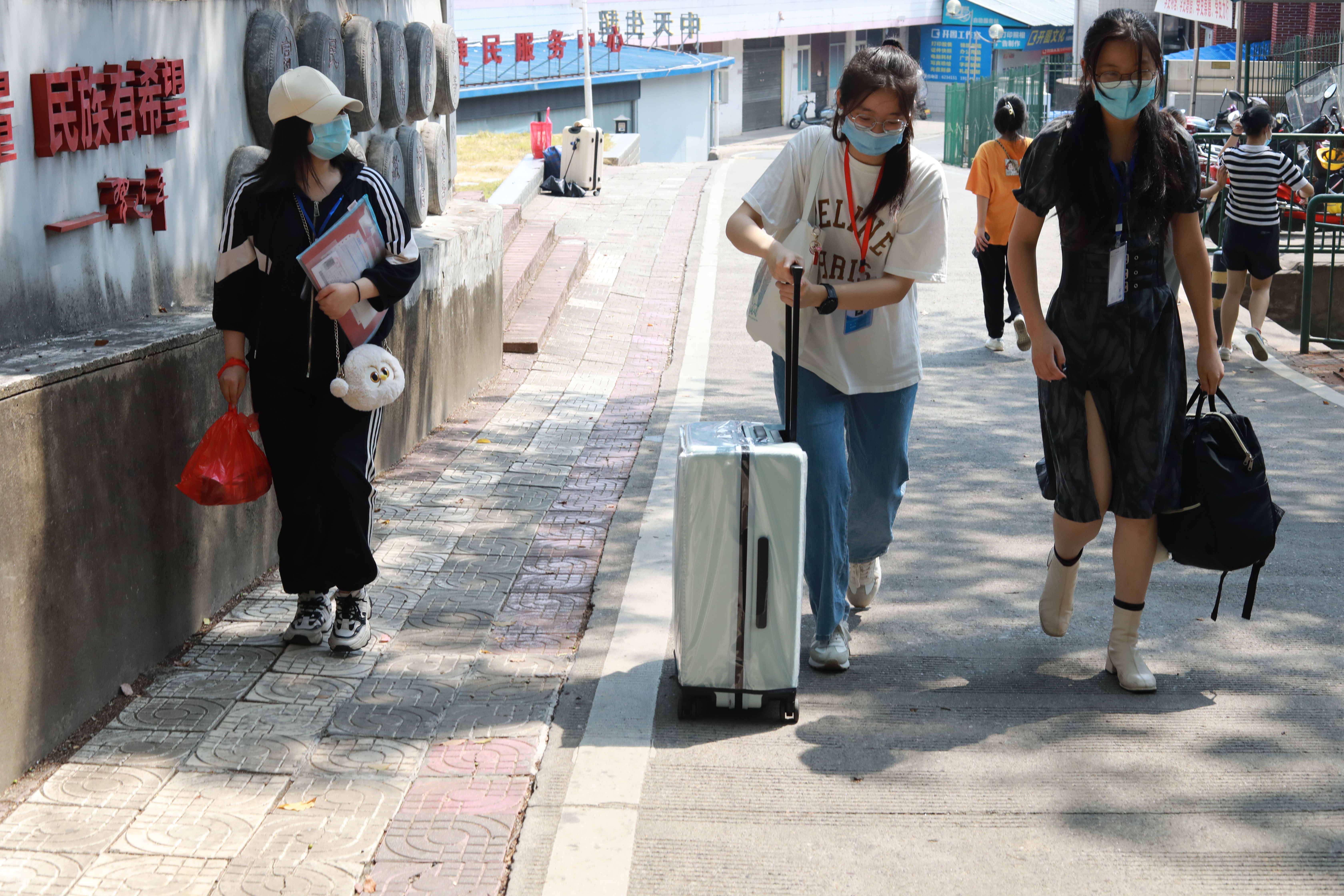 “学妹,子和书屋对面就是荷园食堂,鹤鸣楼是我们日常上课的教室......”思政2102班李钰晨一边帮她对接的学妹推着行李箱,一边热情地向她介绍校园。“我们前一个礼拜就通过QQ联系好对接时间了,因为疫情防控的原因,家长不能进入学校,作为志愿者,我们一定要发挥好自己的作用。”李钰晨说。