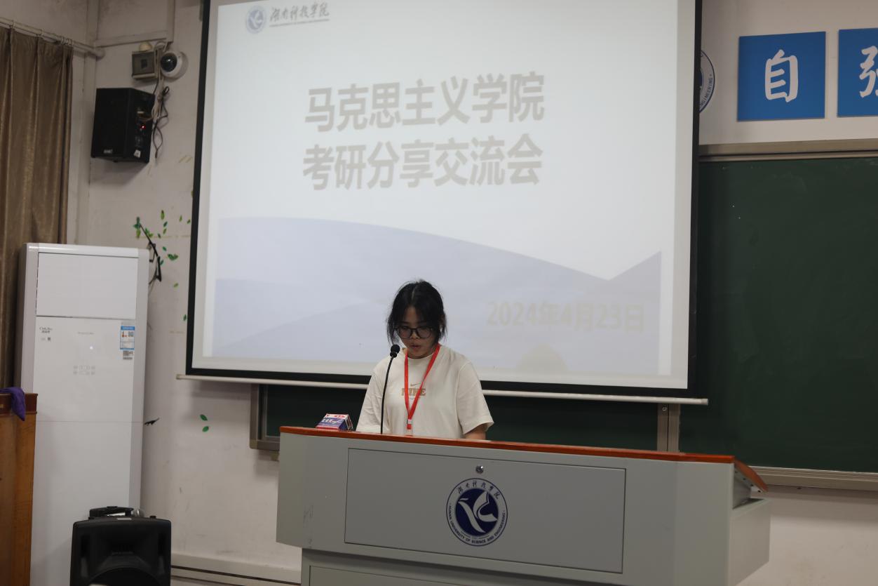 本网讯(记者赵睿琪、杨鑫杰)为加强同学们对考研的认识,充分调动学生考研积极性,提高备考效率。4月23日晚,马克思主义学院于鹤鸣楼501教室举办考研分享交流会。