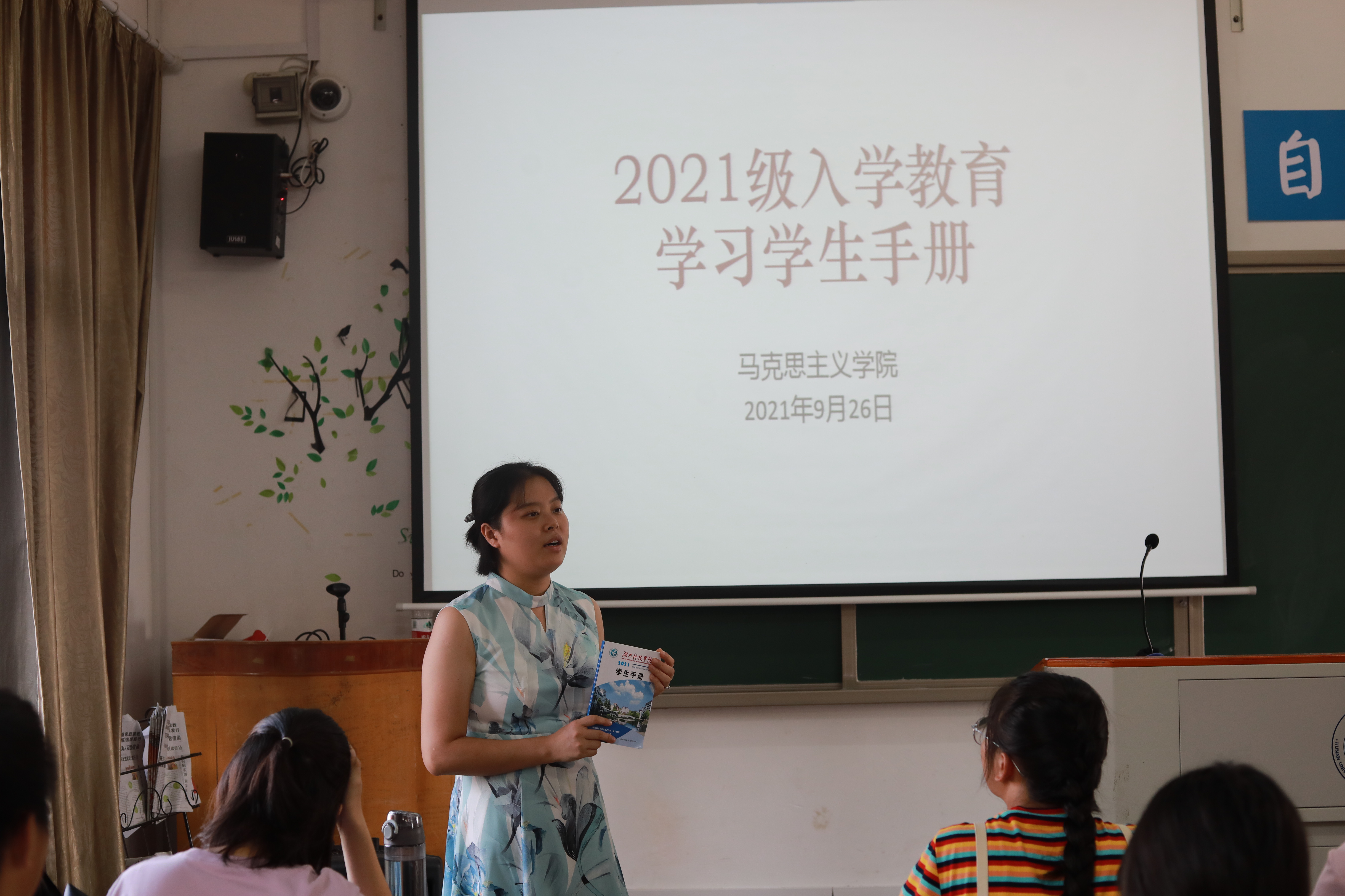 本网讯(记者 吴祖琳)为提高新生的综合素质,增进对学校规章制度的了解,9月26日下午,马克思主义学院于鹤鸣楼501教室开展2021级入学教育之学习《学生手册》活动。本次活动由21级辅导员胡非主持,全体21级新生参加。