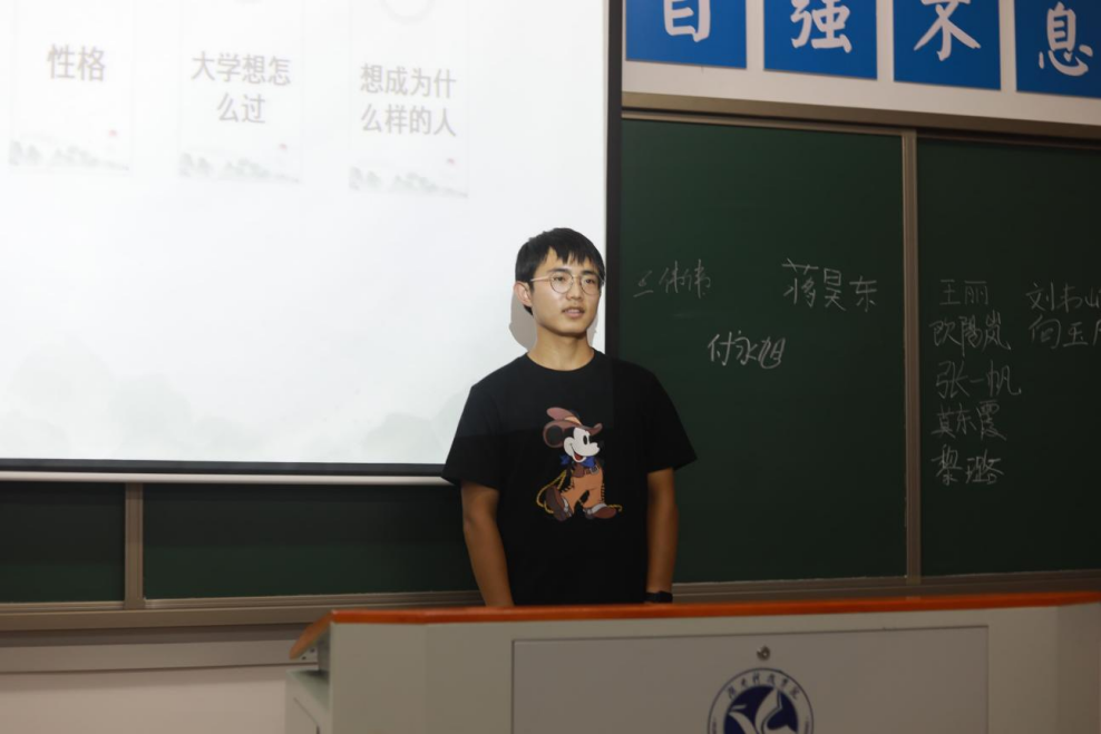 随后,各班同学依次上台自我介绍。从一上台的羞怯局促,到后来的大方自如,同学们逐渐放开了。来自天南海北的同学共聚于此,是缘分安排,也是梦想使然。走上台,介绍自己的家乡特色、美景美食,或是分享自己来到这上学的喜悦,字里行间都是对大学生活的憧憬与希望。